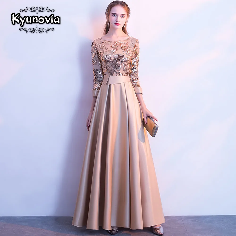 Женские вечерние платья с блестками Kyunovia, черные винтажные вечерние платья с круглым вырезом и длинным рукавом, E27