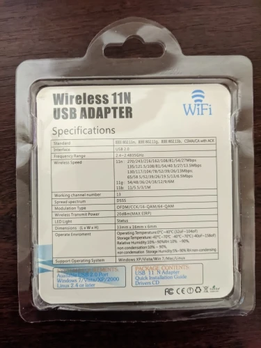 заказываю уже не первый раз отличный адаптер. Предыдущий работает уже 2 года))) только если у вас виндовс ХР придется ручками качать драйвер и устанавливать. На винду 7-10 устанавливается автоматом сразу появляется выбор вайфай сети