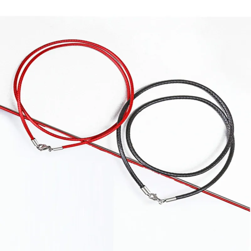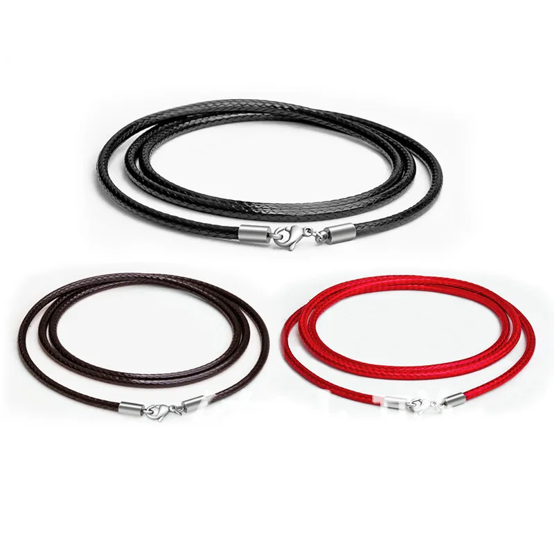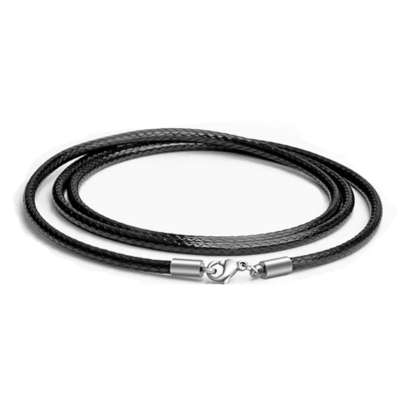 Черный кожаный шнур, 1,5 мм, 2 мм, 3 мм, Вощеная Веревка, цепочка для сделай сам, застежка-лобстер из нержавеющей стали, аксессуары для ювелирных изделий, шнур для ожерелья, 60 см