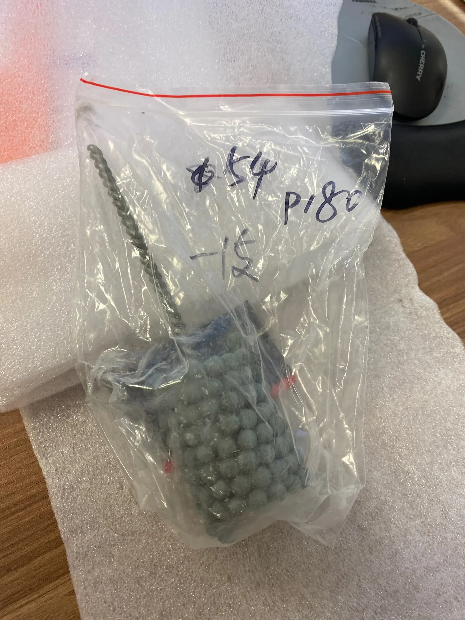 Я еще не пробовал, но кажется функциональным, чтобы увидеть. Абразивные шарики удерживаются пластиковой проволокой.