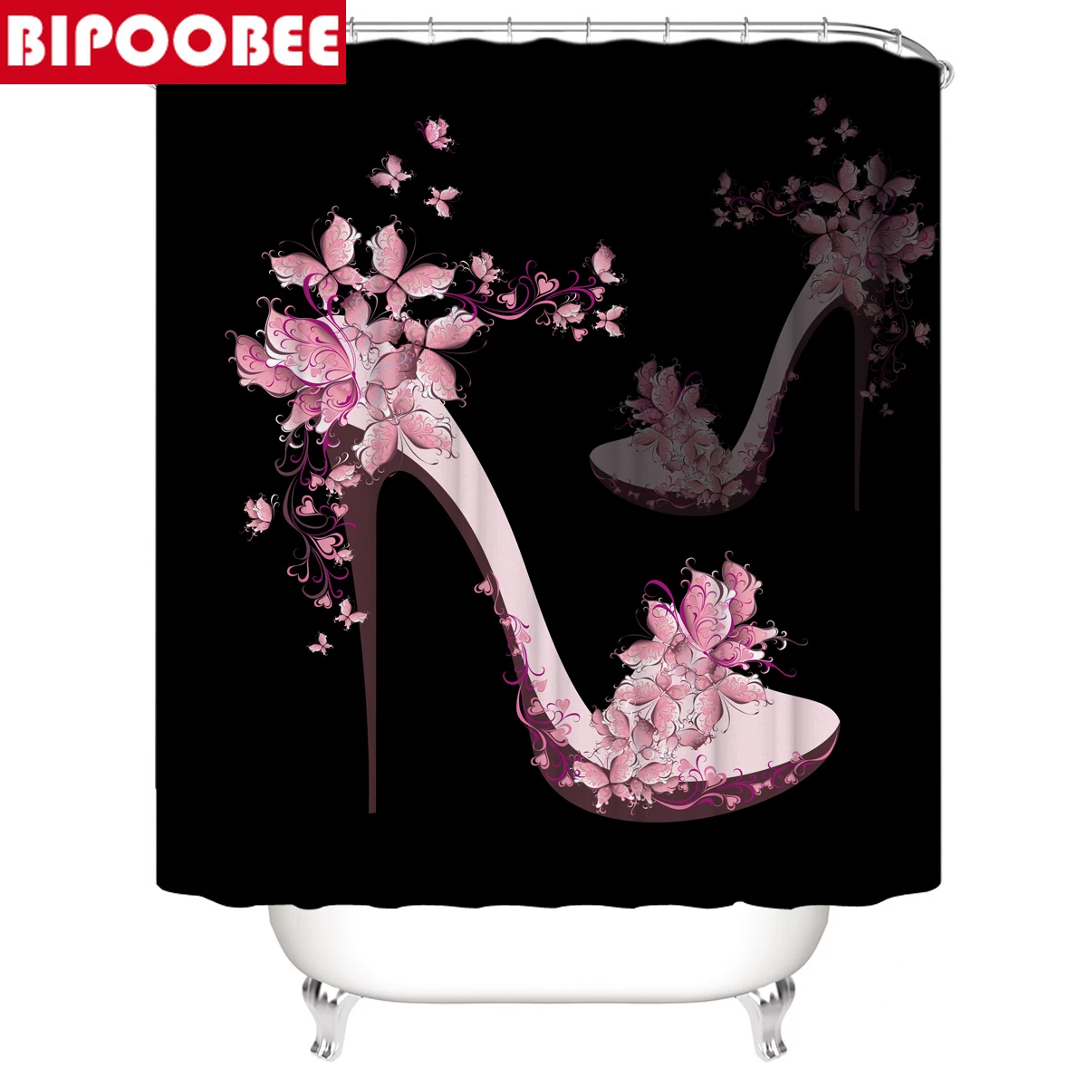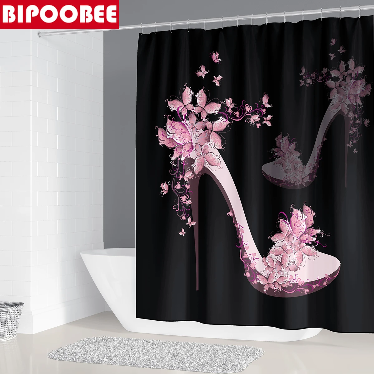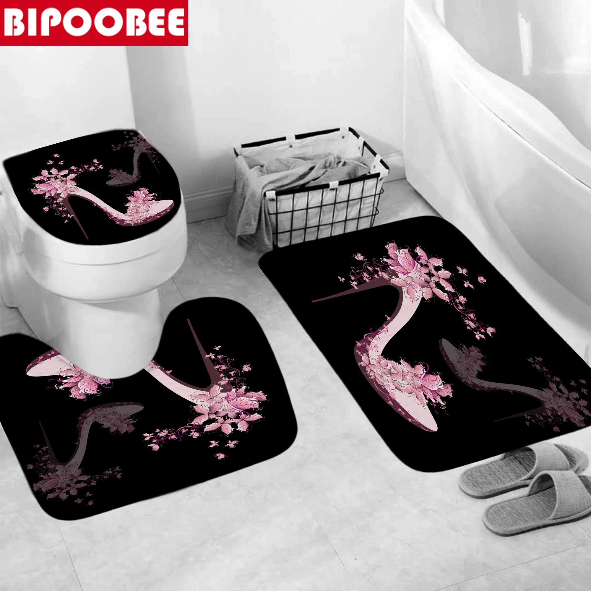Черная занавеска для душа, Розовая Занавеска на высоком каблуке шторы с крючками для ванной с крючками, Нескользящие коврики, крышка для унитаза, набор ковриков, домашний декор
