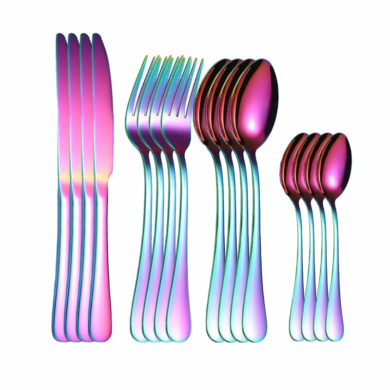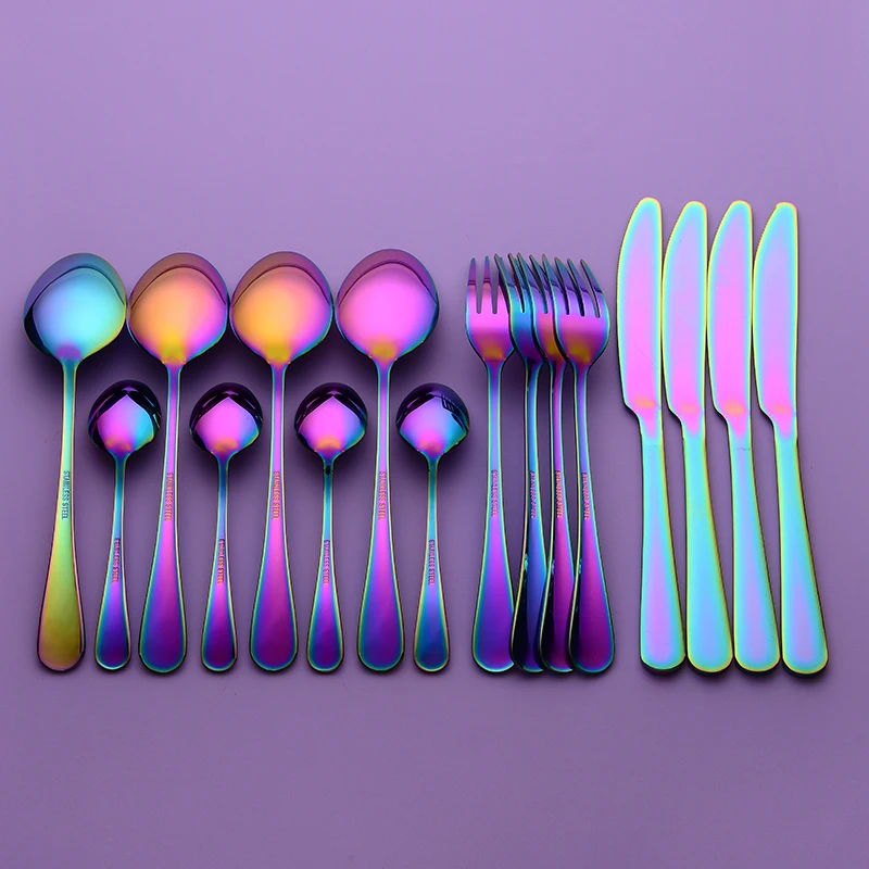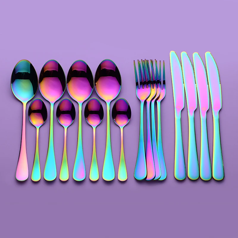 Lingeafey Радужная посуда из нержавеющей стали столовый набор для кухни столовые приборы держатель вилка ложка набор вилки, ножи, Ложки Набор для ужина