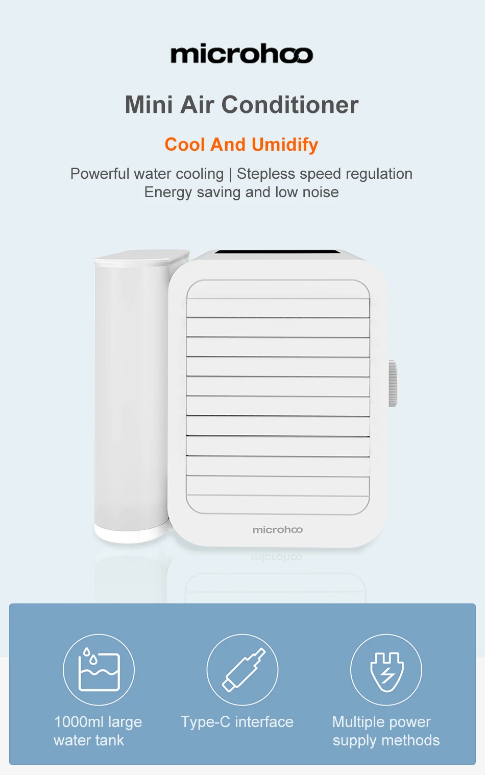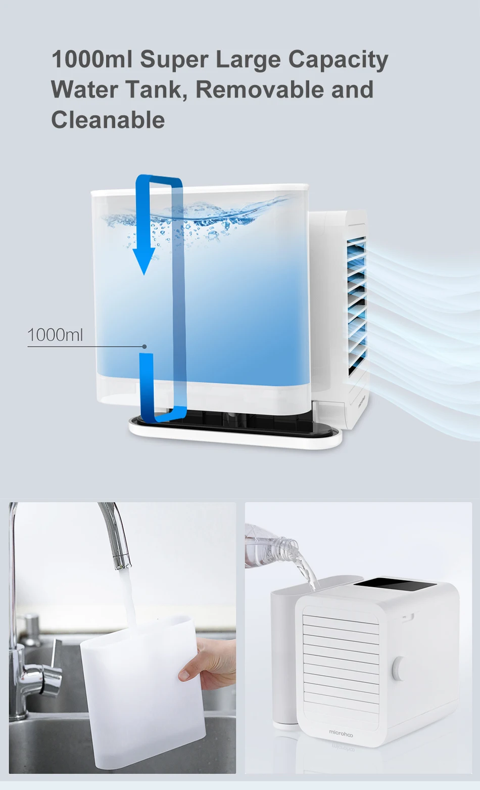 Портативный USB мини-кулер для кондиционера Microhoo, емкость 1000 мл, сенсорный экран, регулировка скорости, энергосберегающий вентилятор, кулер