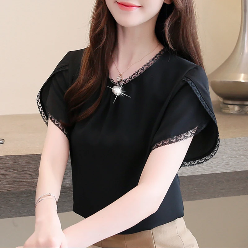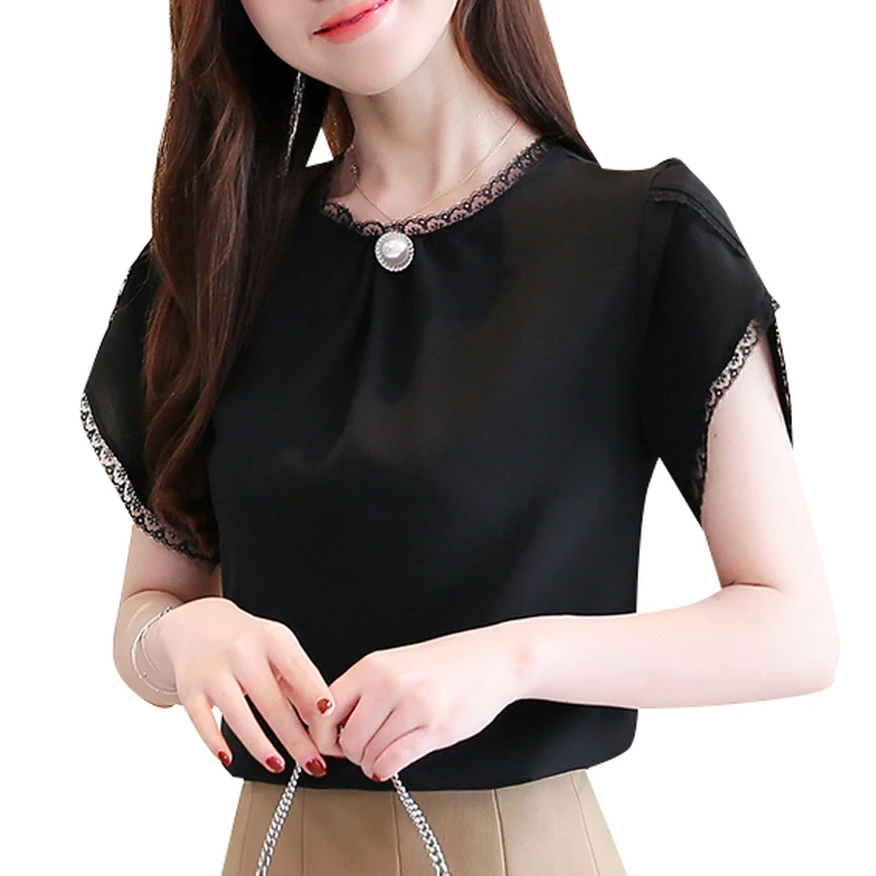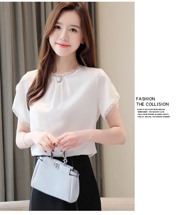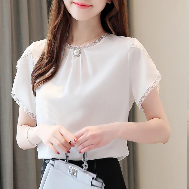 Блузка женская однотонная с коротким рукавом, белаярозовая, на лето, 2021