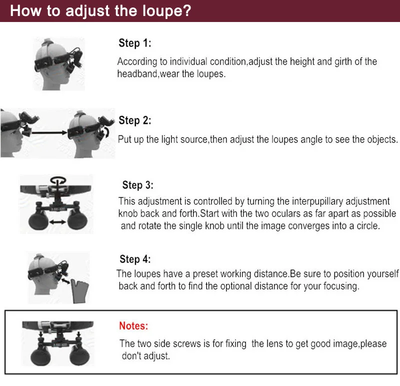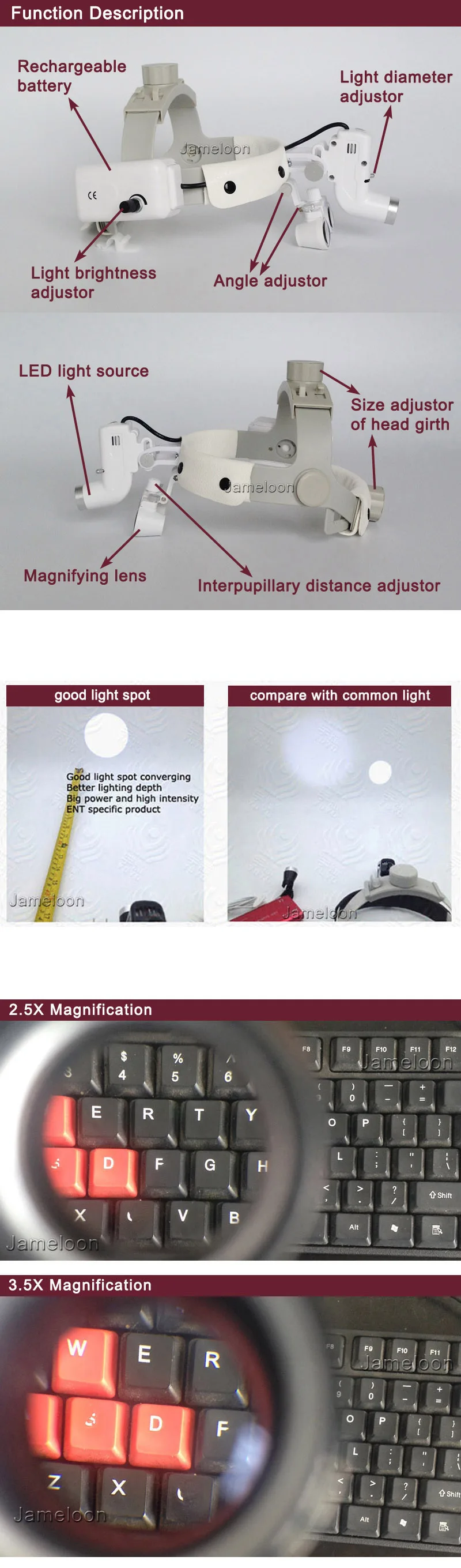 Стоматологическая лупа, металлический чехол с увеличением 3,5x, регулируемая ярсветильник