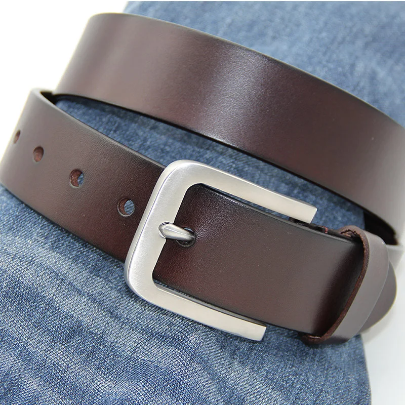 Мужской ремень из натуральной кожи с металлическим сплавом и шпилькой