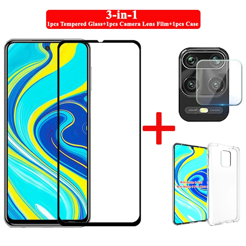 3-в-1силиконовый чехол Redmi Note 9s чехол для Xiaomi Redmi Note 9 Pro Max Защитная пленка для экрана из закаленного стекла Защитная пленка для объектива камеры защитная пленка