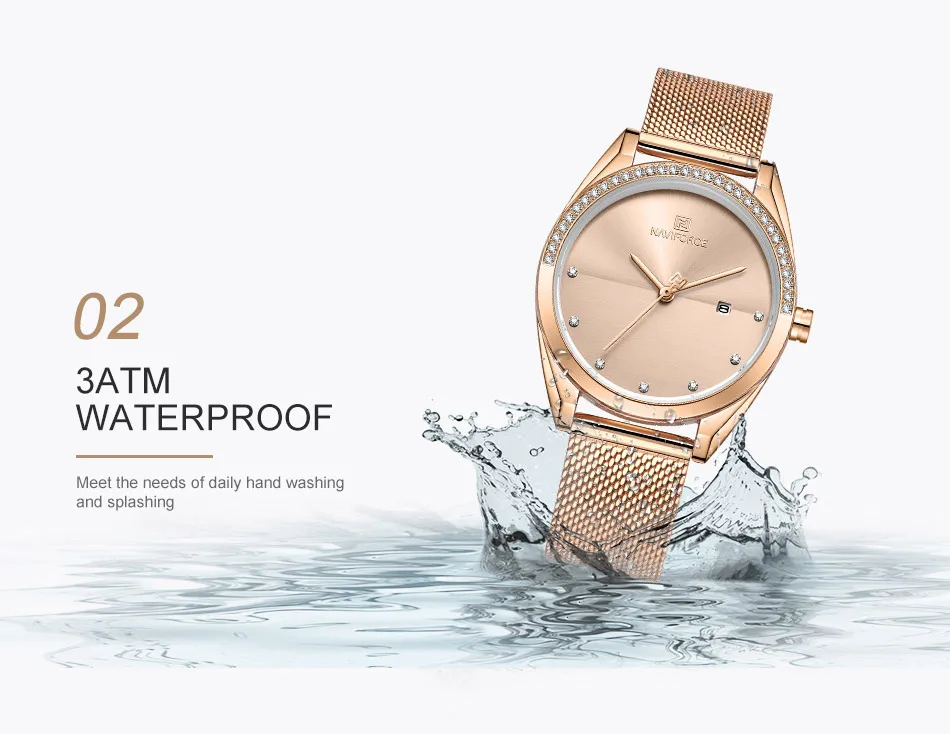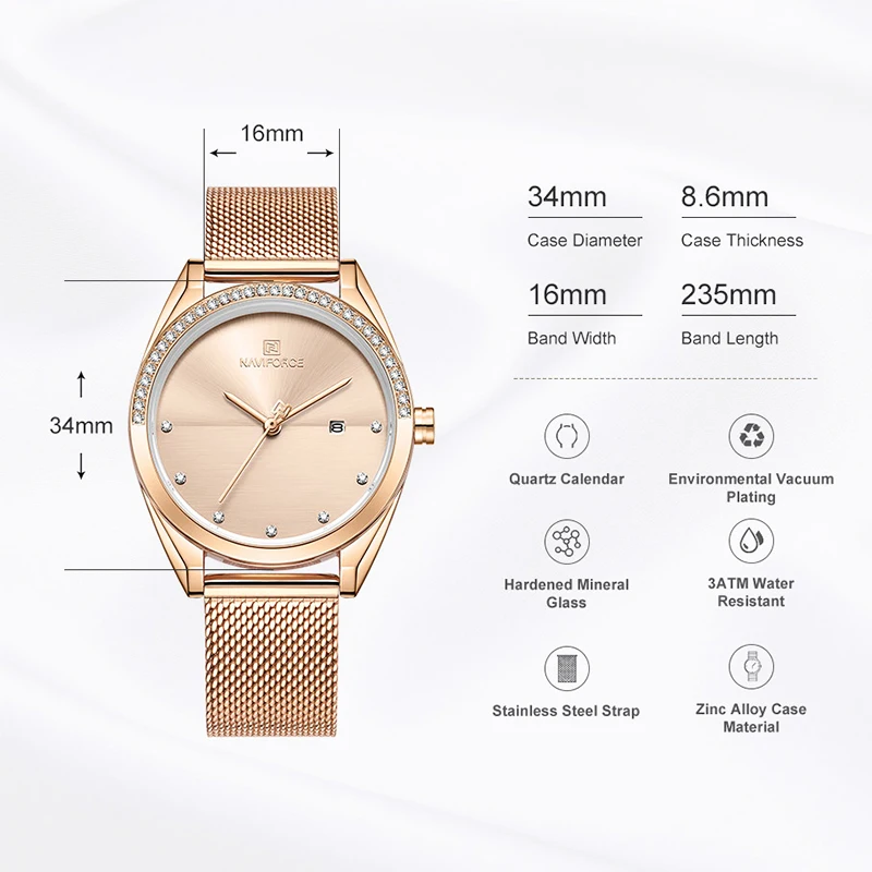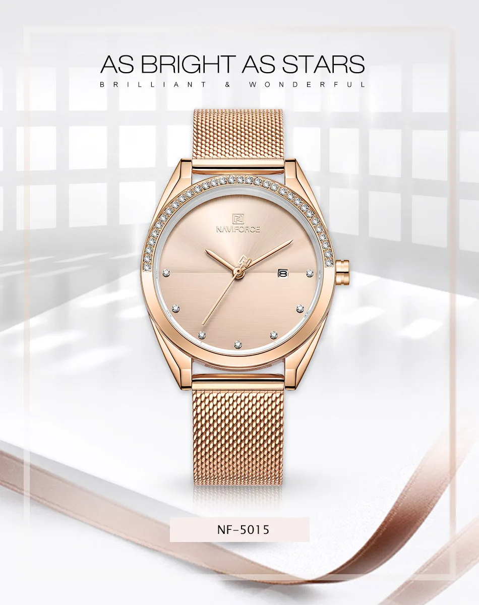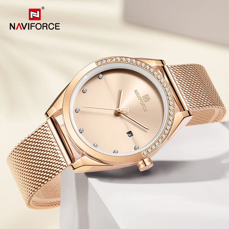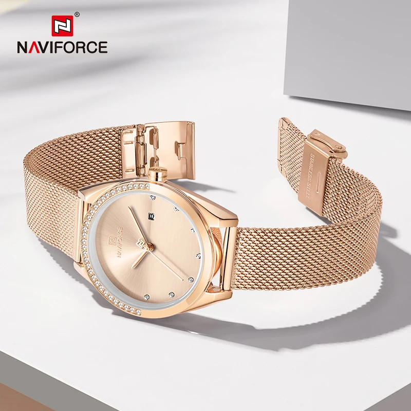 Часы NAVIFORCE женские кварцевые, Роскошные водонепроницаемые повседневные Роскошные наручные, розовое золото