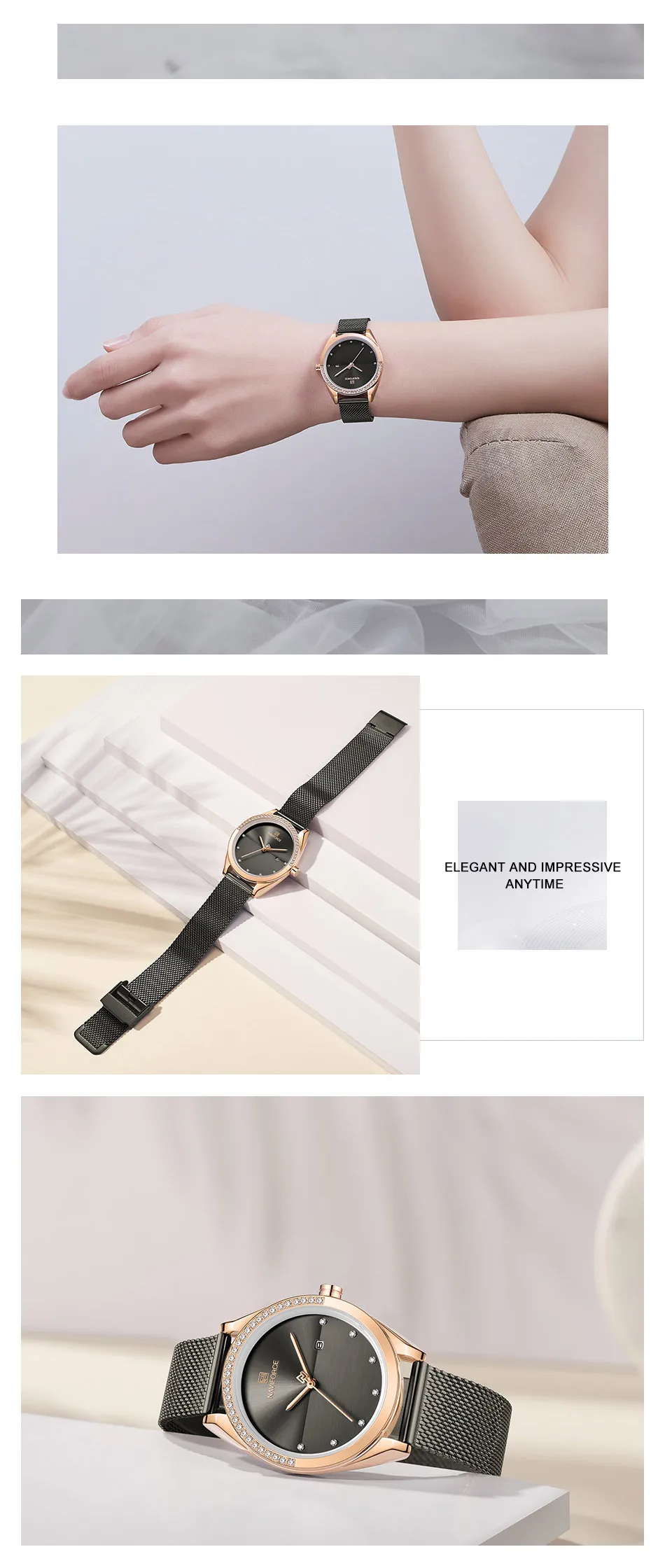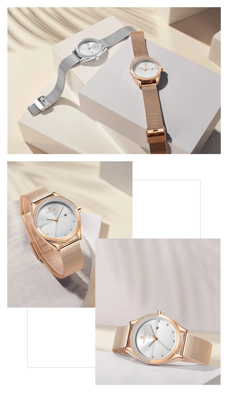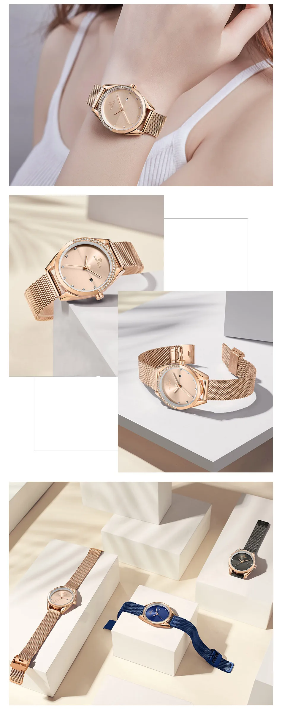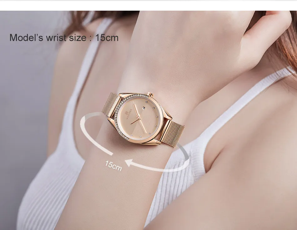 Часы NAVIFORCE женские кварцевые, Роскошные водонепроницаемые повседневные Роскошные наручные, розовое золото