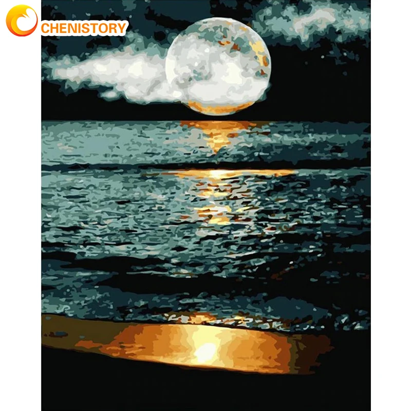 Рамка CHENISTORY Луна для самостоятельного рисования по номерам, современное настенное искусство, картина по номерам, Акриловая Краска на холсте, домашнее искусство, подарок