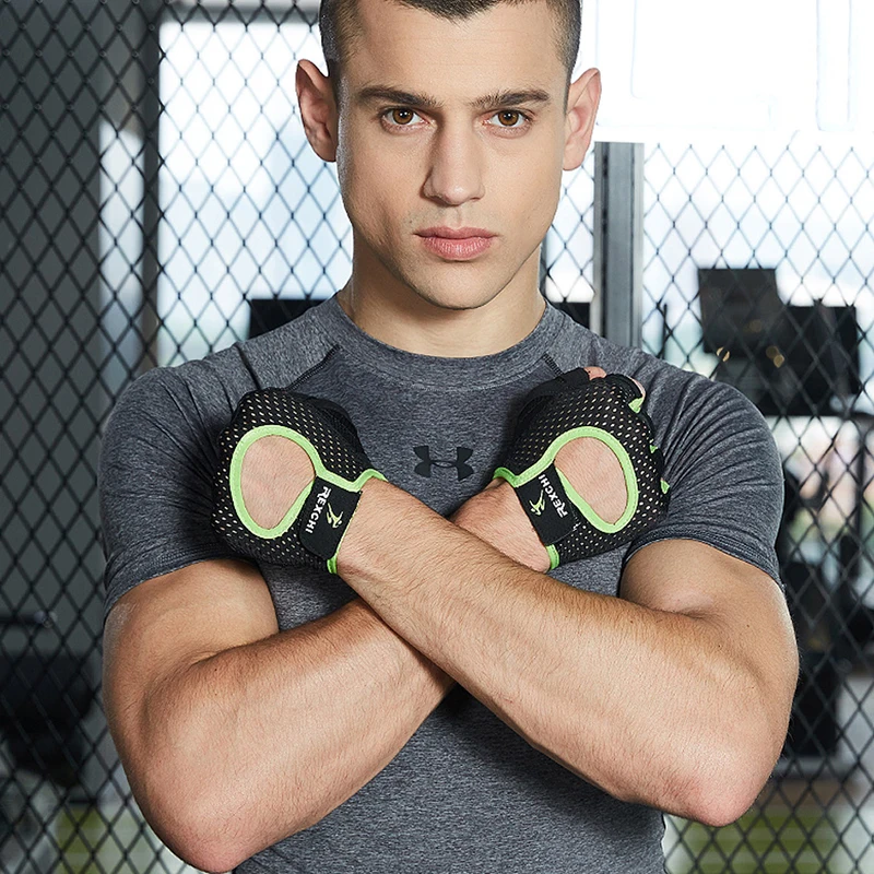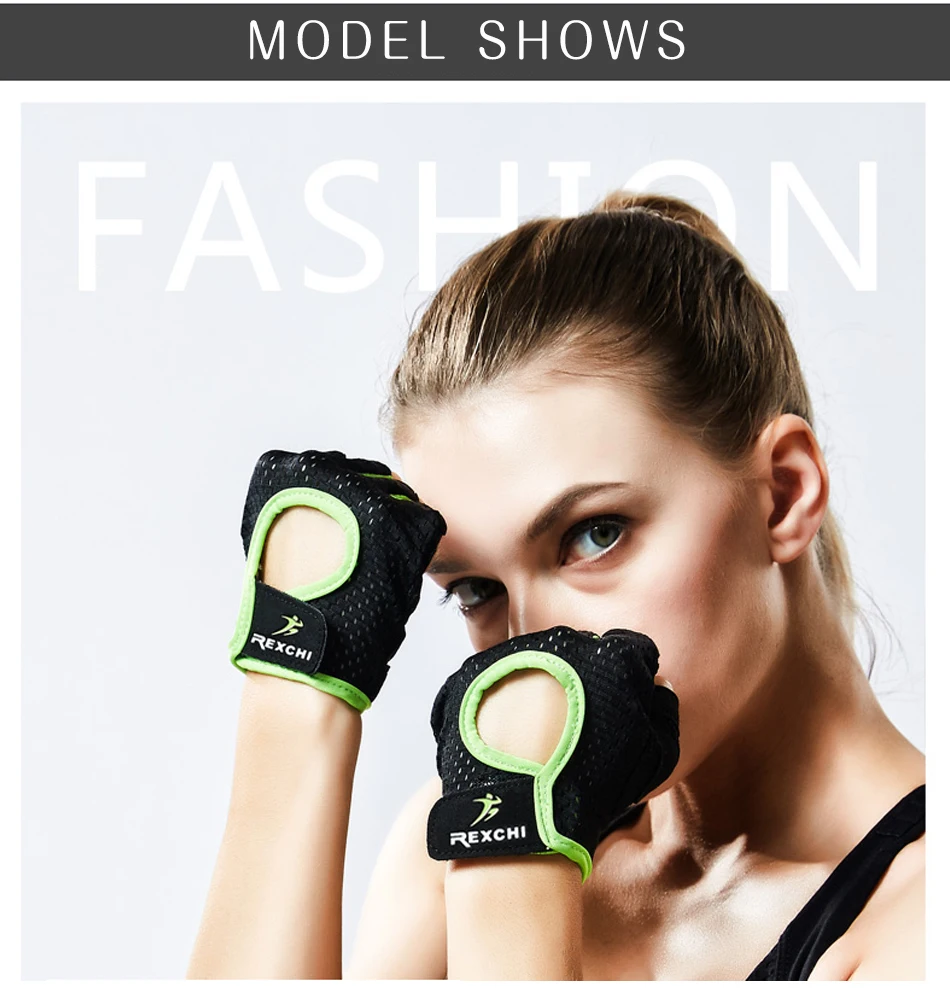 REXCHI, Перчатки для фитнеса в тренажерном зале, перчатки для велоспорта, противоскользящие, анти-пот, анти-шок, дышащие мужские, женские, мужские перчатки с полупальцами, защита рук, оптовая продажа