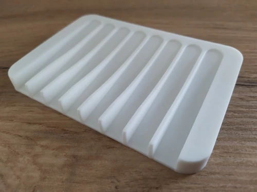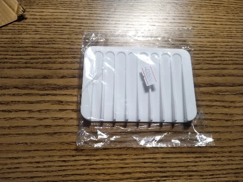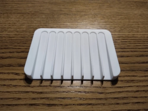 Очень хорошее качество, приятная на ощупь, выглядит стильно и достаточно дорого. Вода действительно уходит - это очень удобно. Я переживала, что мыло будет сильно забиваться в желобки, но за несколько дней такой проблемы не возникло.