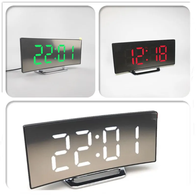 Цифровой будильник, настольные часы, изогнутый СВЕТОДИОДНЫЙ экран, ...