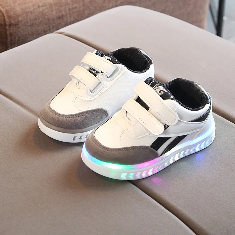 Детская мультяшная брендовая светодиодная обувь, кожаная обувь для первых шагов, обувь для новорожденных, детская обувь для девочек, модные ботинки для мальчиков и девочек
