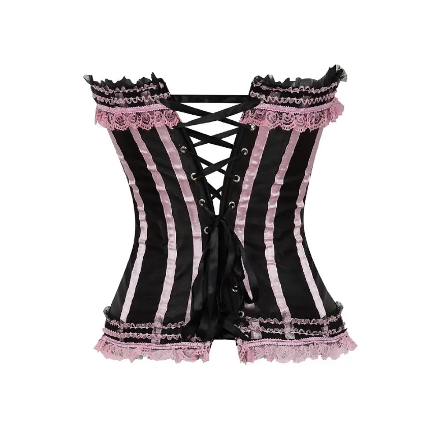 NameSexy Vintage Striped Satin Bow Lace Up Overbust Corset