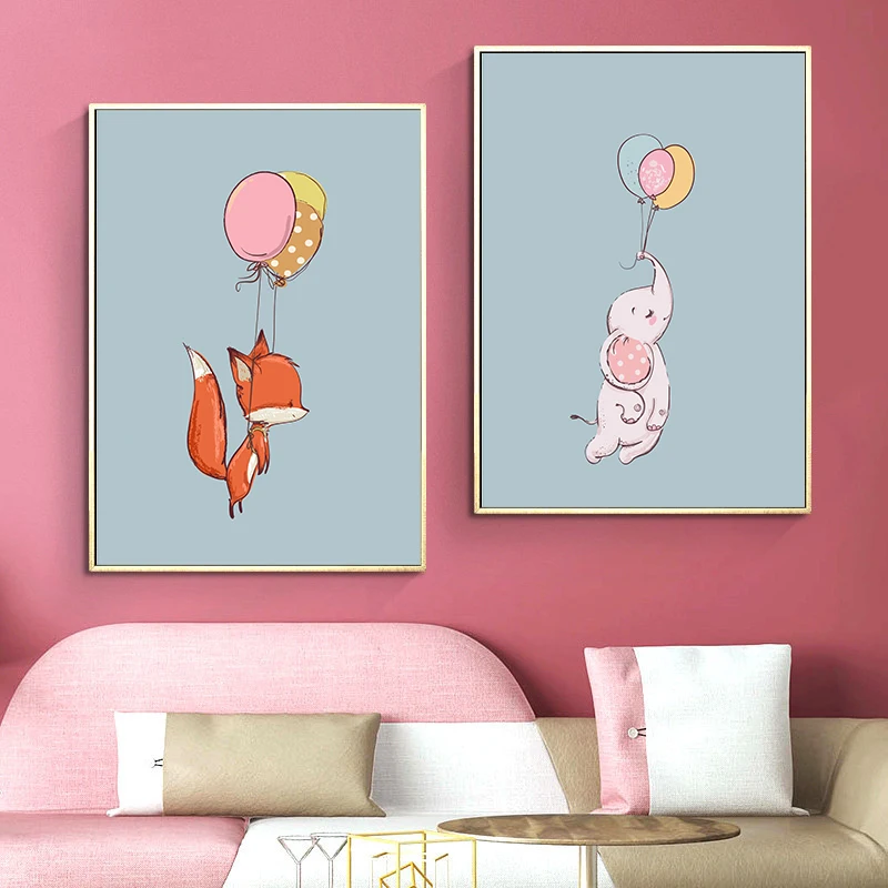 Настенная картина для детской комнаты Дамбо лиса, Картина на холсте, Мультяшные скандинавские плакаты и принты, настенные картины, декор для детской комнаты