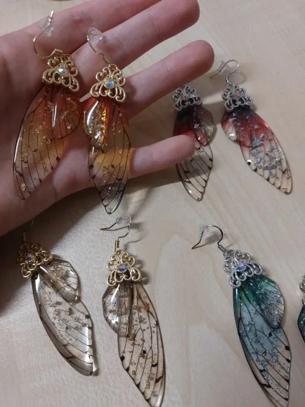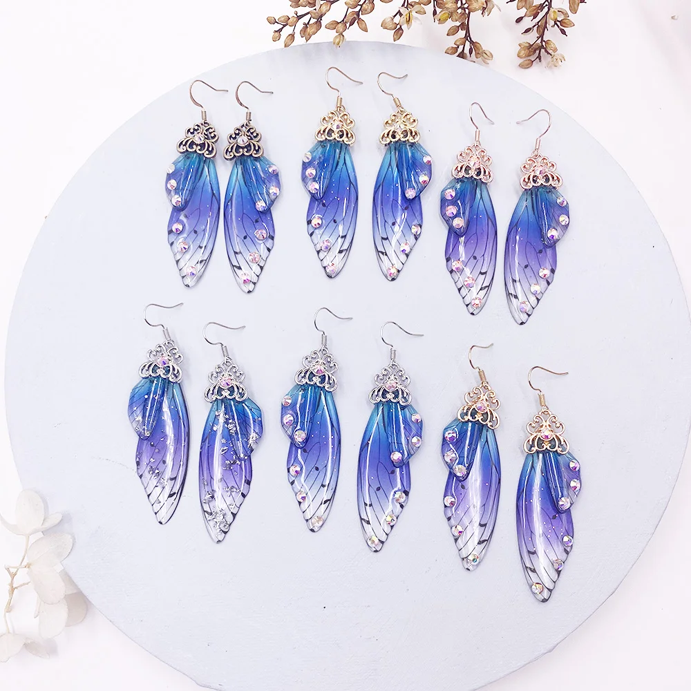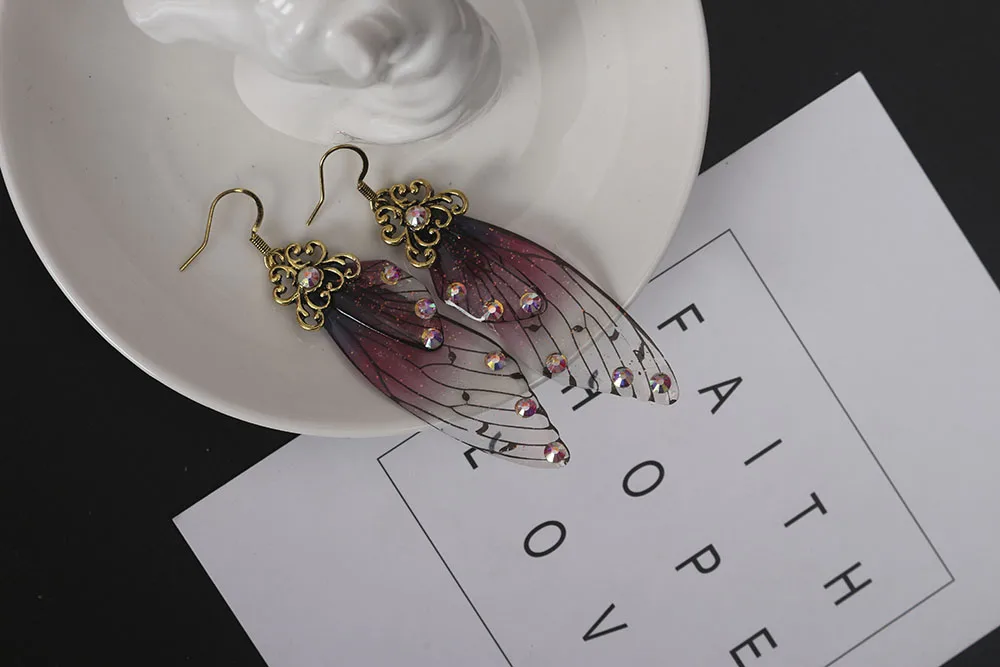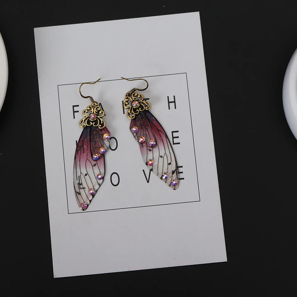 Модные женские висячие серьги ручной работы с крыльями фиолетовая смола, волшебные серьги с крыльями цикады, фиолетовые серьги, винтажные ювелирные изделия