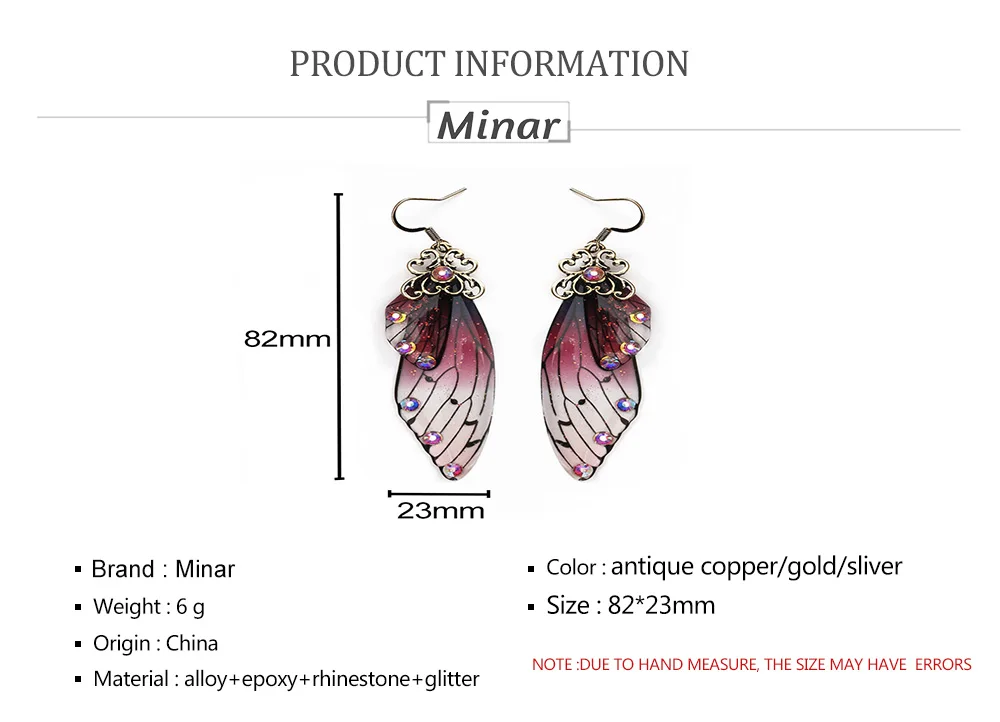 Модные женские висячие серьги ручной работы с крыльями золотистого цвета, серьги-цикады с крыльями, стразы, фиолетовые серьги, винтажные женские ювелирные изделия, оптовая продажа
