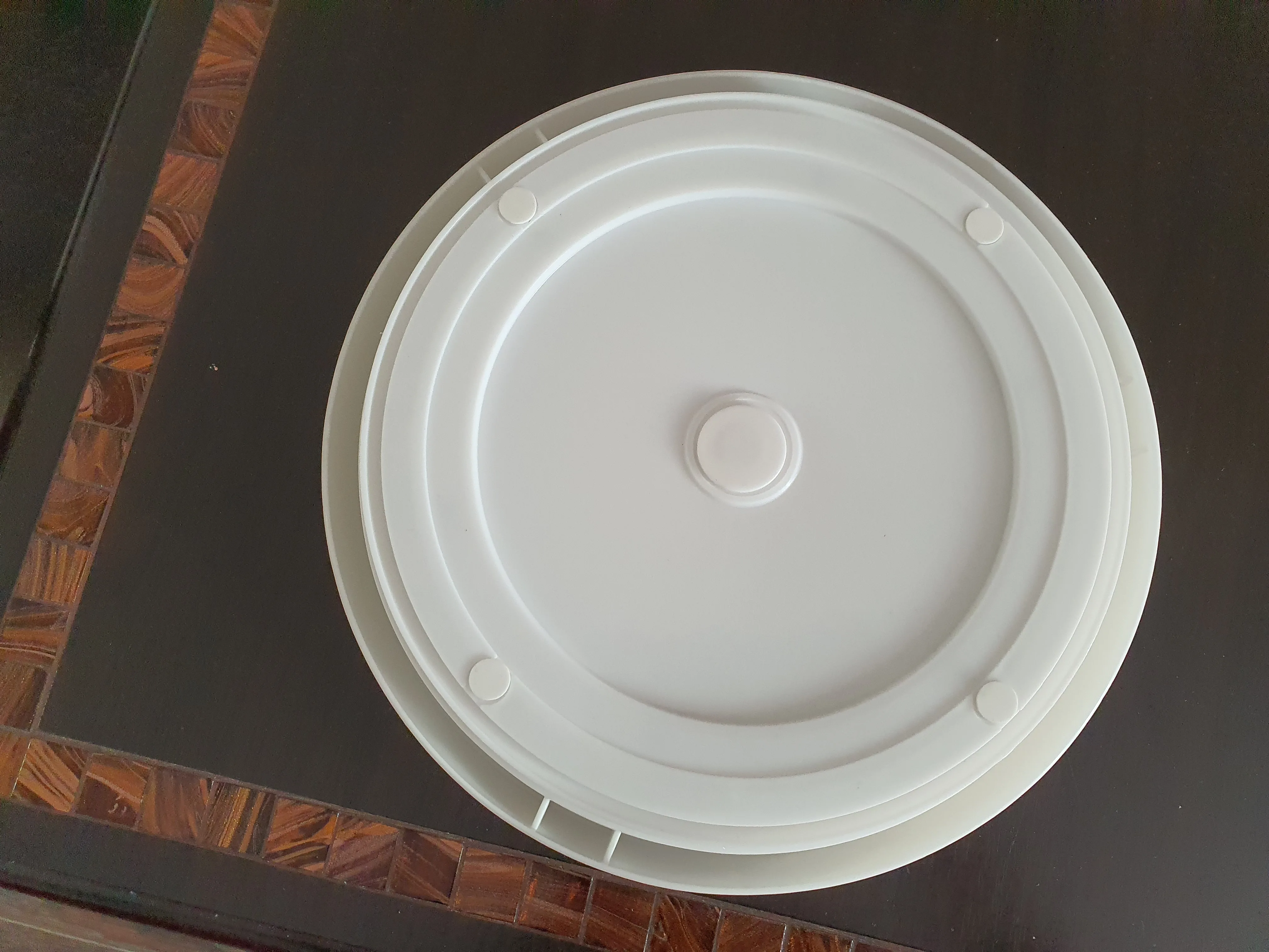 Хорошие подносы. Крутятся отлично. Прорезиненное покрытие. Брала 2 штуки и ещё один двухъярусный. Шли до Калининграда 2 месяца. Один пришёл разбитый-продавец в течение 1 дня вернул за него деньги. Рекомендую и товар, и продавца.