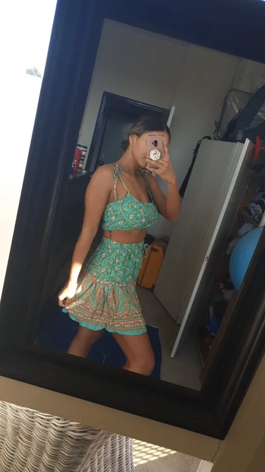 Женский комплект с юбкой, укороченный топ на тонких бретелях и мини-юбка, в стиле бохо, с цветочным принтом, лето 2020