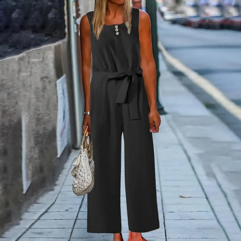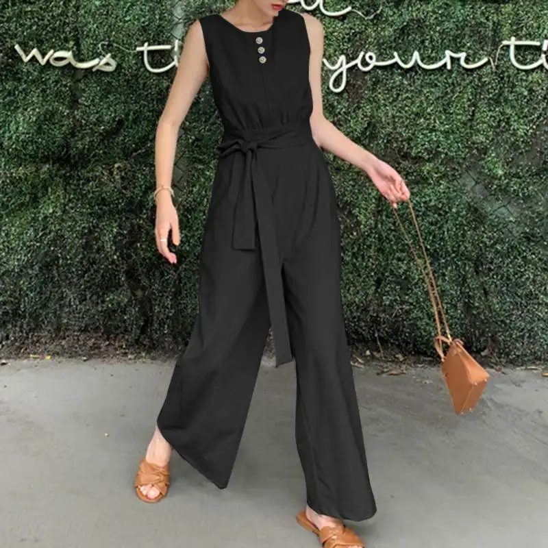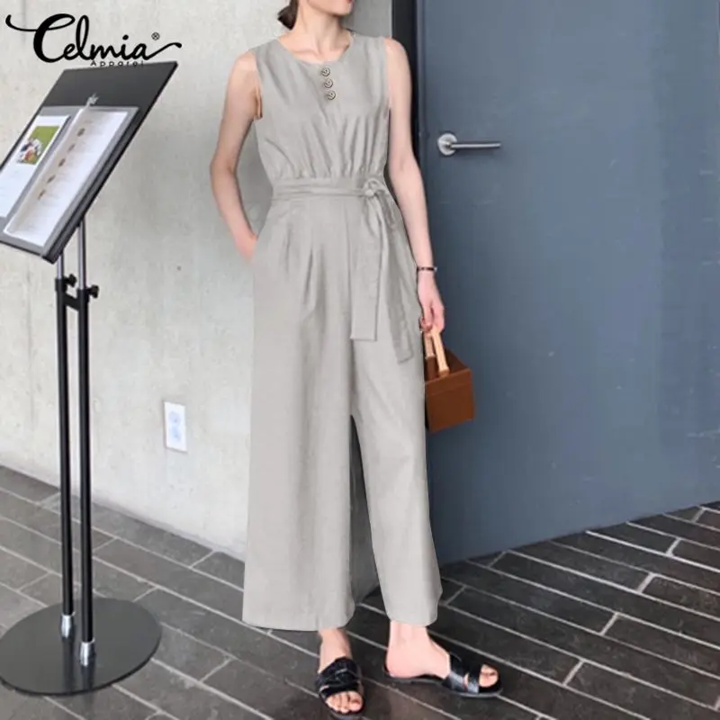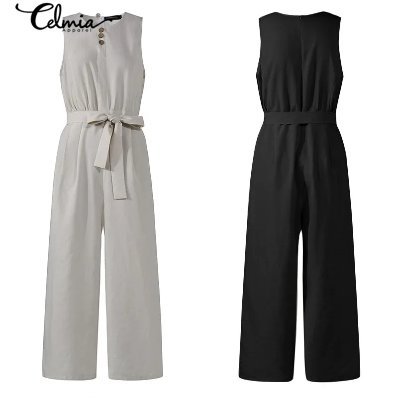 Женский комбинезон с широкими штанинами Celmia, повседневный Свободный комбинезон без рукавов размера плюс, длинный комбинезон с поясом, лето 2020