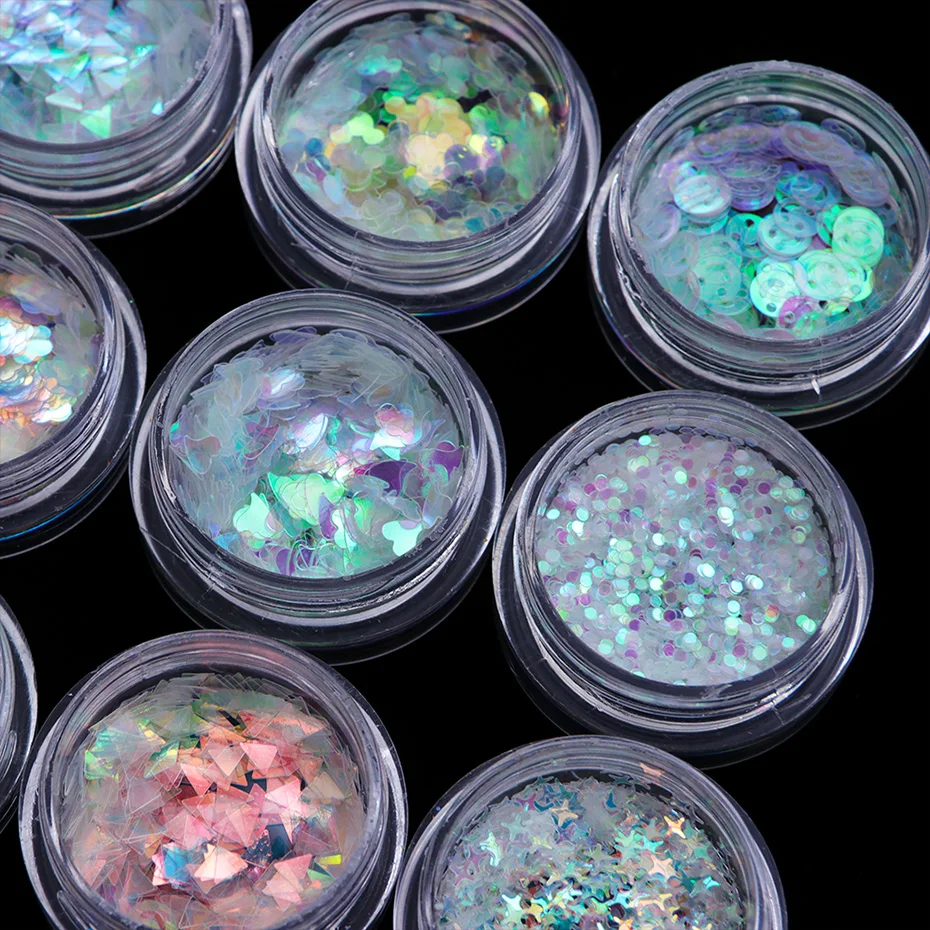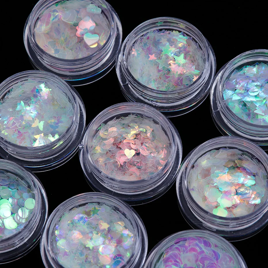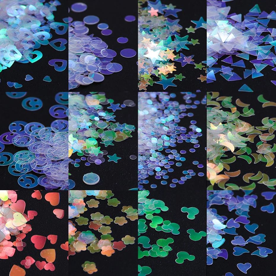 Украшение в виде бабочки, звезды, круга, сердца, хлопьев, зеркальные блестки, градиентное, ультратонкое, SA1591, голографический блестящий для ногтей