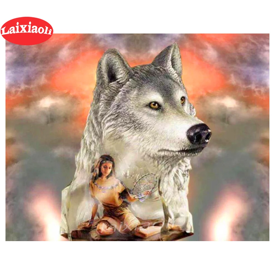 Алмазная картина "сделай сам" с изображением девушки-животного, 3d Алмазная вышивка, квадратный круглый камень, Настенный декор, Алмазная мозаика "Волки"