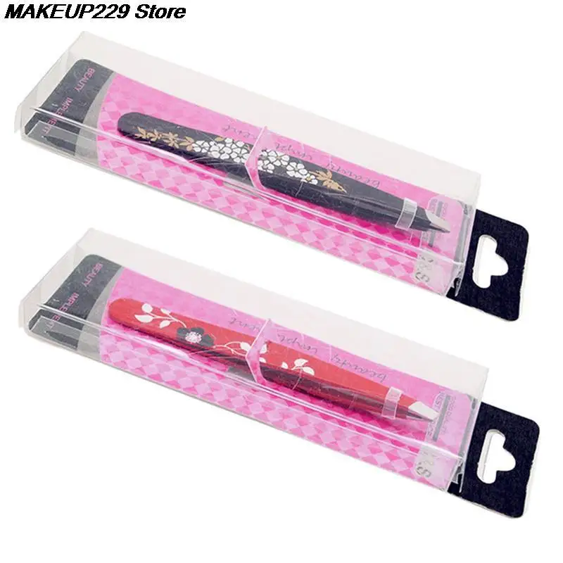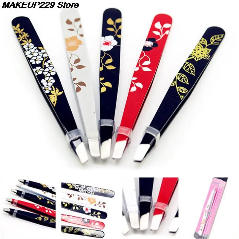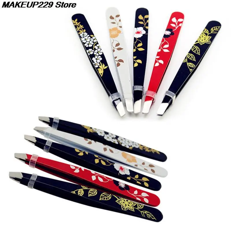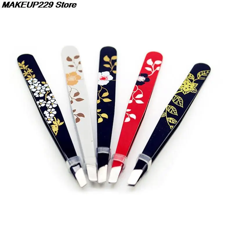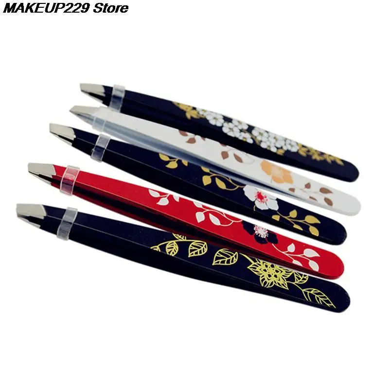 1 шт. пинцет для бровей из нержавеющей стали с цветочным принтом пинцет для бровей с косым кончиком инструмент для снятие макияжа волос