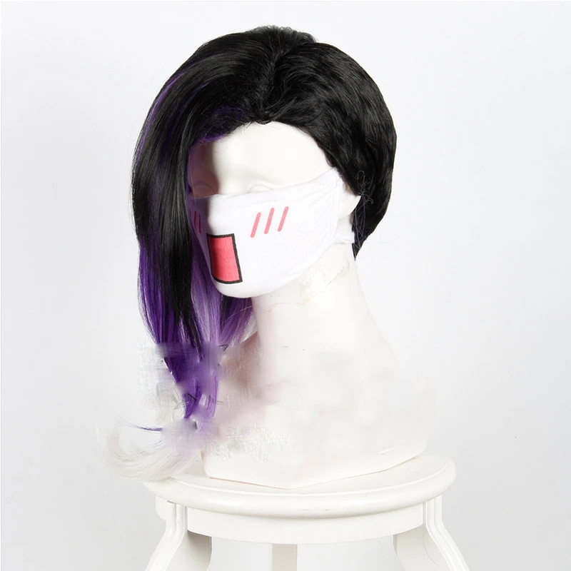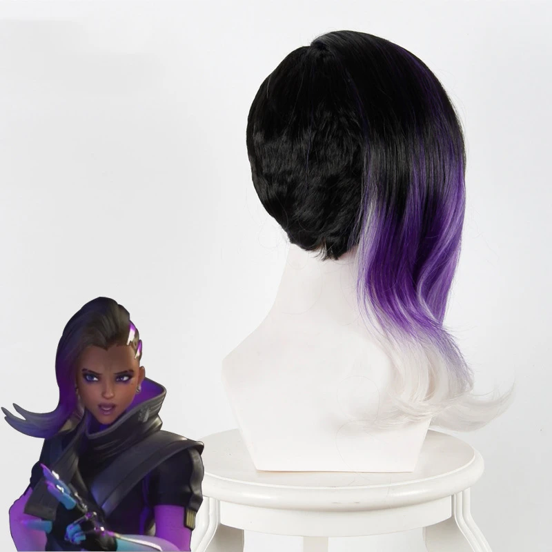 Парик для косплея Overwatch OW Sombra, 40 см, черный, фиолетовый, белый, Омбре, кудрявые синтетические волосы, парики для костюма для косплея
