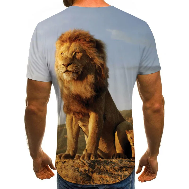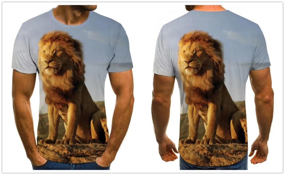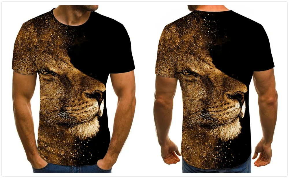 Летние мужские футболки с 3D принтом льва, Мужская футболка, дышаща...