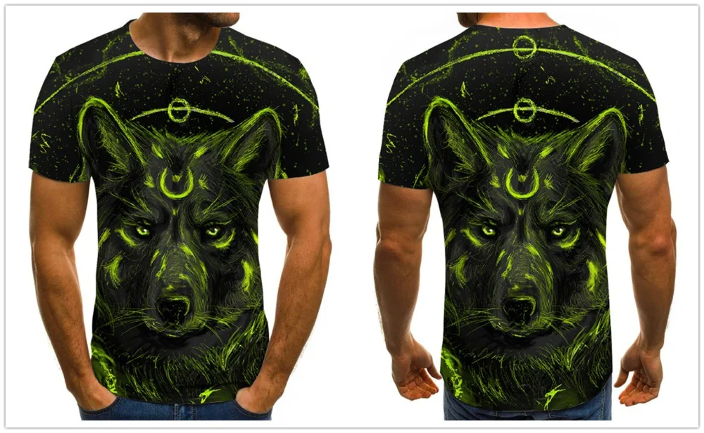 Футболка мужская летняя, дышащая, с 3D-принтом, с волком, XXS-6XL