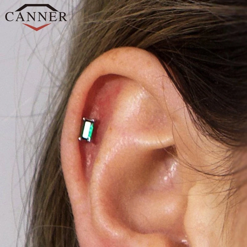 Женские серьги-гвоздики из серебра 925 пробы с цирконом