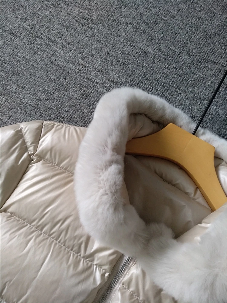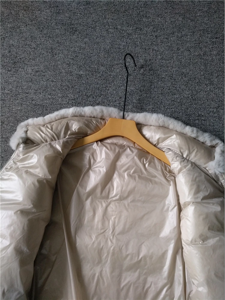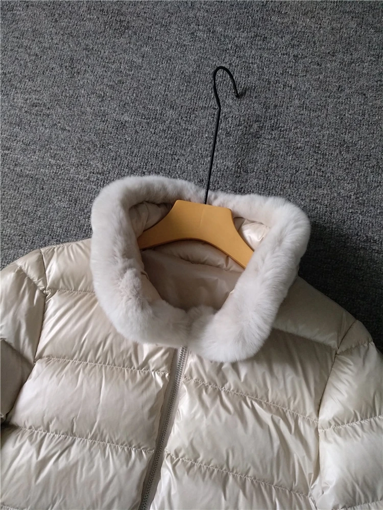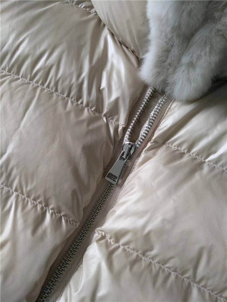 Куртка женская на 2021 пуху белой утки с длинными рукавами, теплая, короткая, зимняя, пальто из натурального кроличьего меха