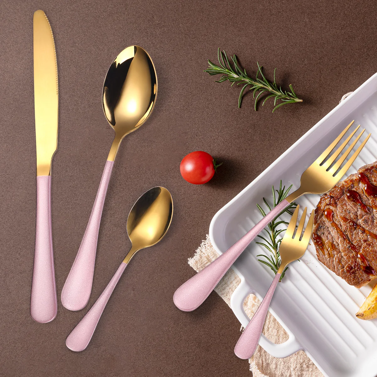 24 шт., набор посуды из золотого порошка, вилка, ложка, нож, набор столовых приборов, 18/10 нержавеющая сталь, набор посуды, праздничная деревянная подарочная коробка