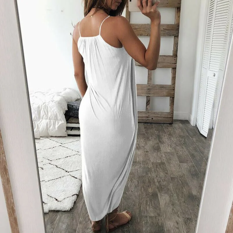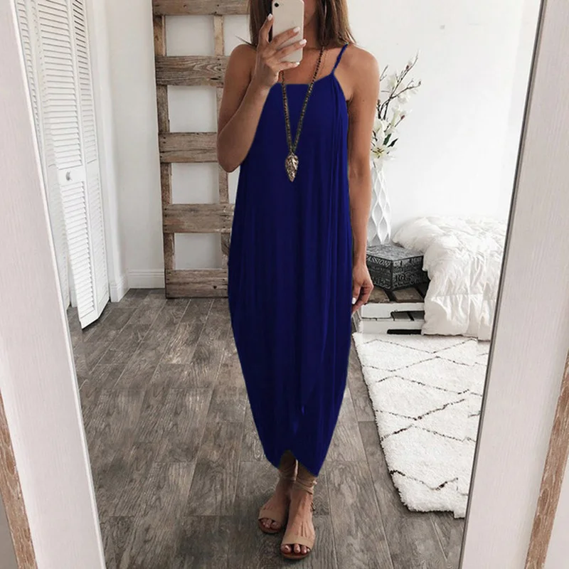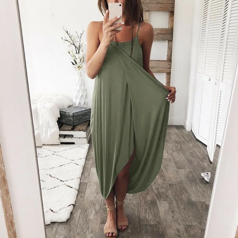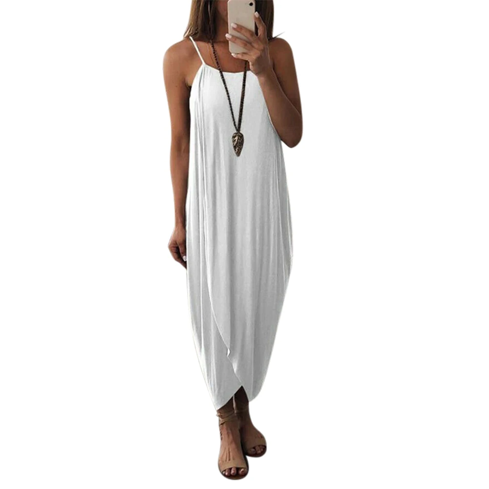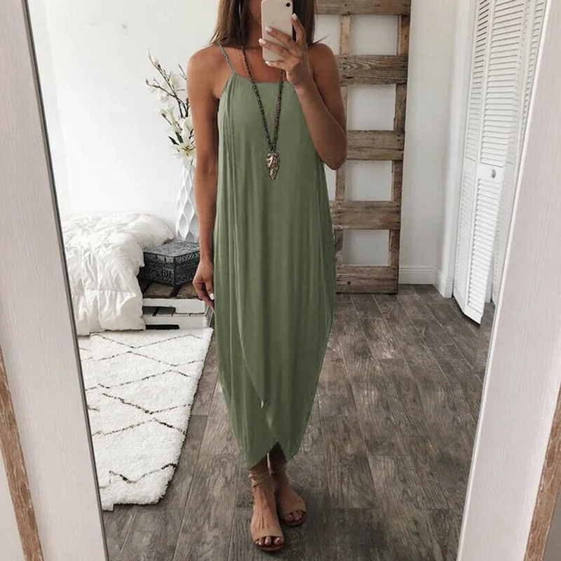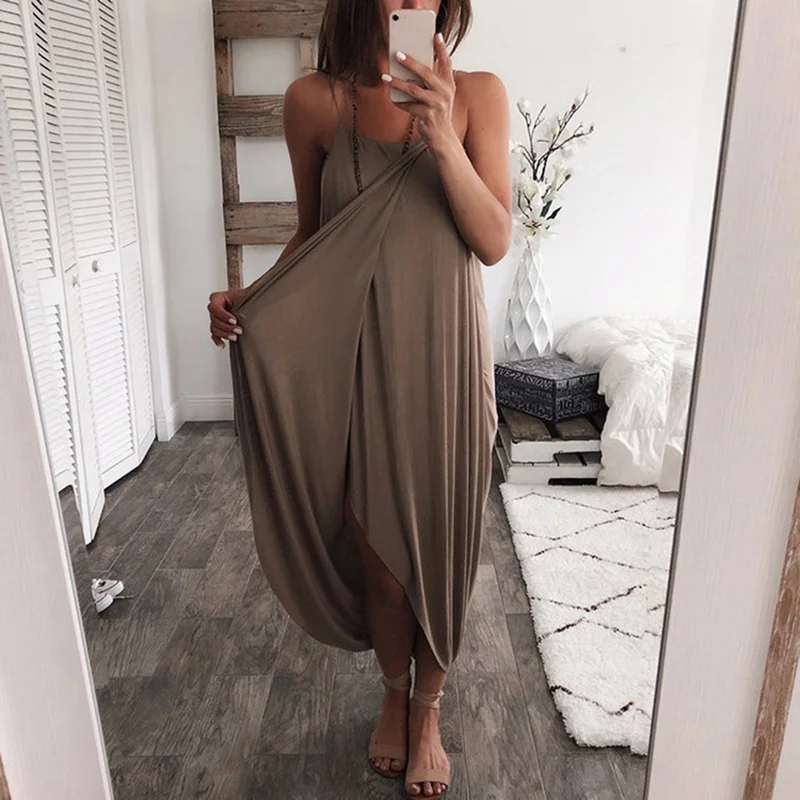 Женское воздушное платье-макси, однотонное вязаное свободное платье без рукавов для летней плявечерние XRQ88