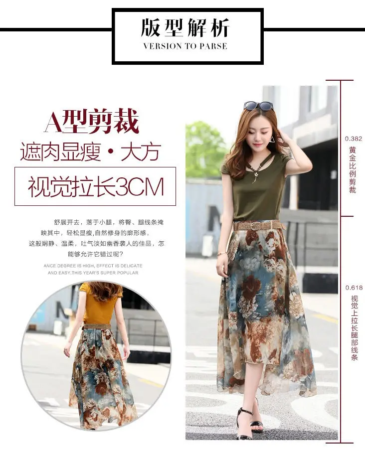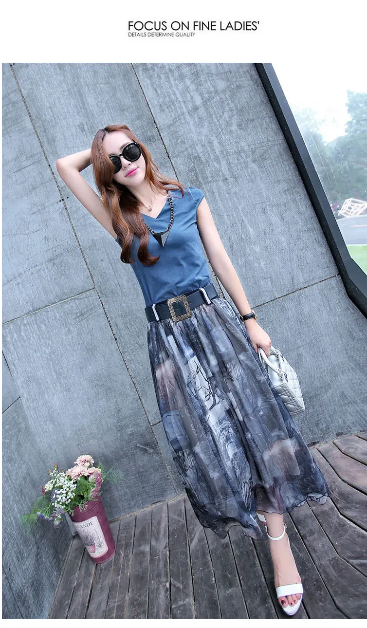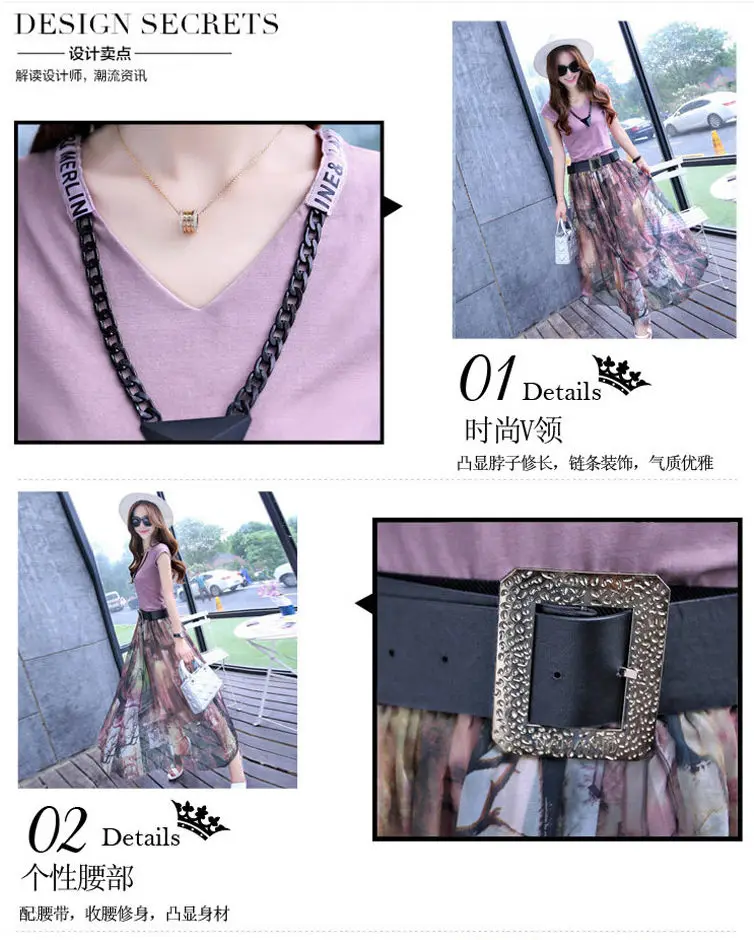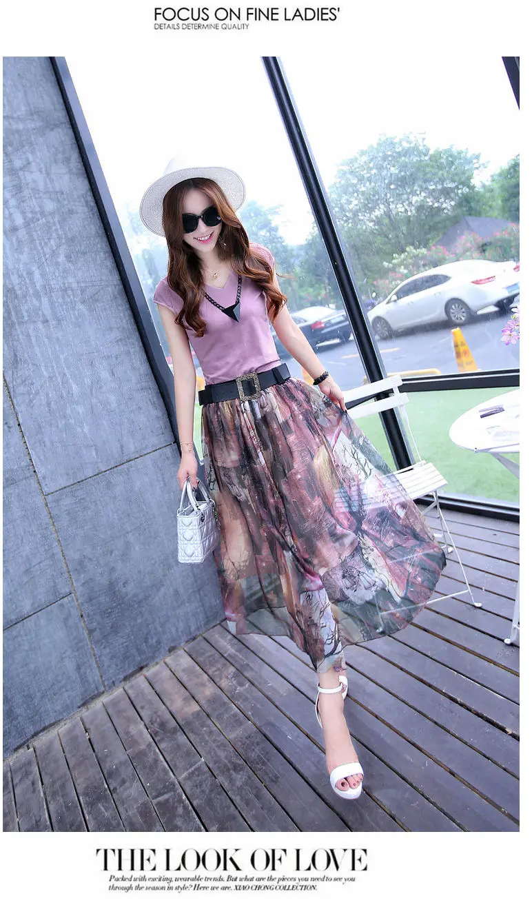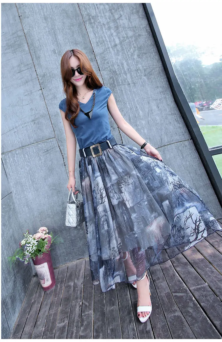 Женский костюм-двойка, футболка и шифоновая юбка, повседневный костюм с круглым вырезом и коротким рукавом, лето 2021
