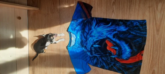 Футболка яркая, синтетика голимая, посмотрим как будет носиться... Брали на размер больше и не прогадали