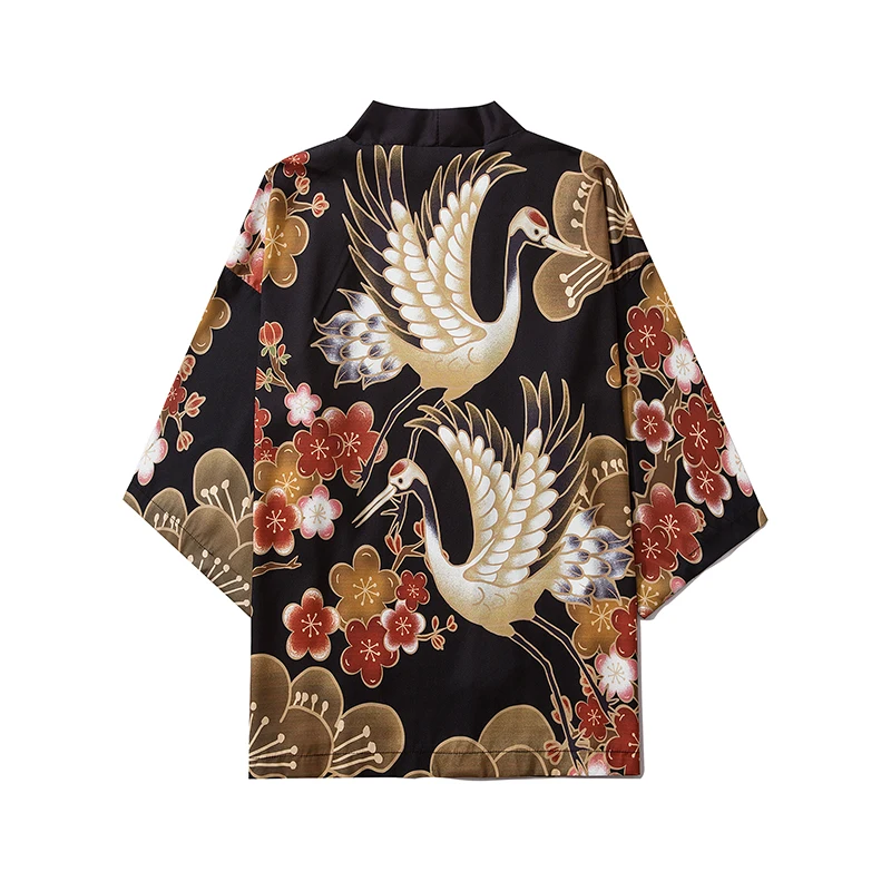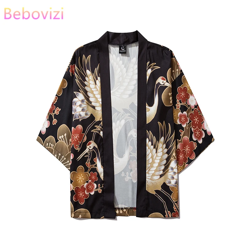 Свободного покроя, модный пляжный кардиган с рисунком журавля в японском стиле Харадзюку, топ-рубашка для мужчин и женщин, азиатская одежда, лето 2020