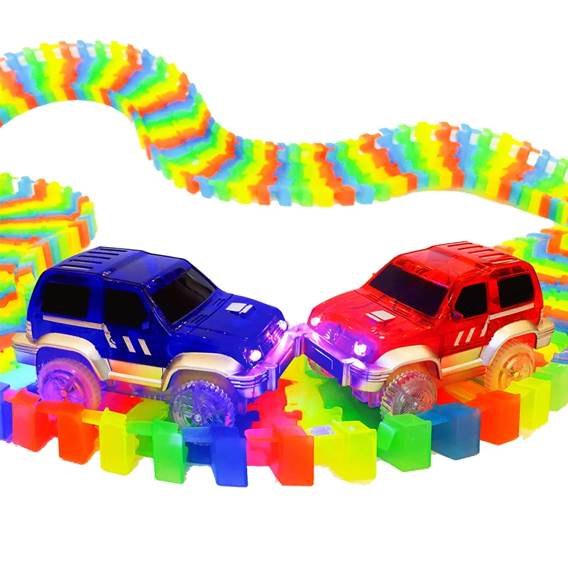 Железная дорога, волшебный светящийся гибкий трек, игрушки для детей, гоночный Железнодорожный трек, изгиб, электронный автомобиль, игрушки для детей, подарок, гоночный автомобиль