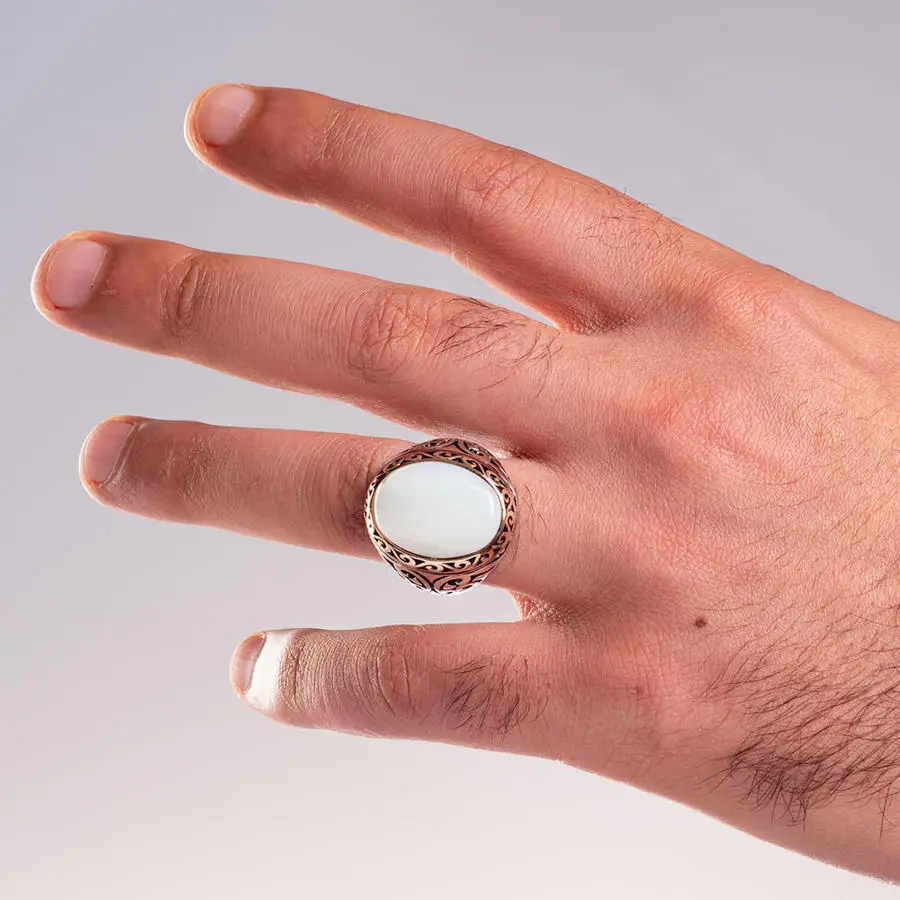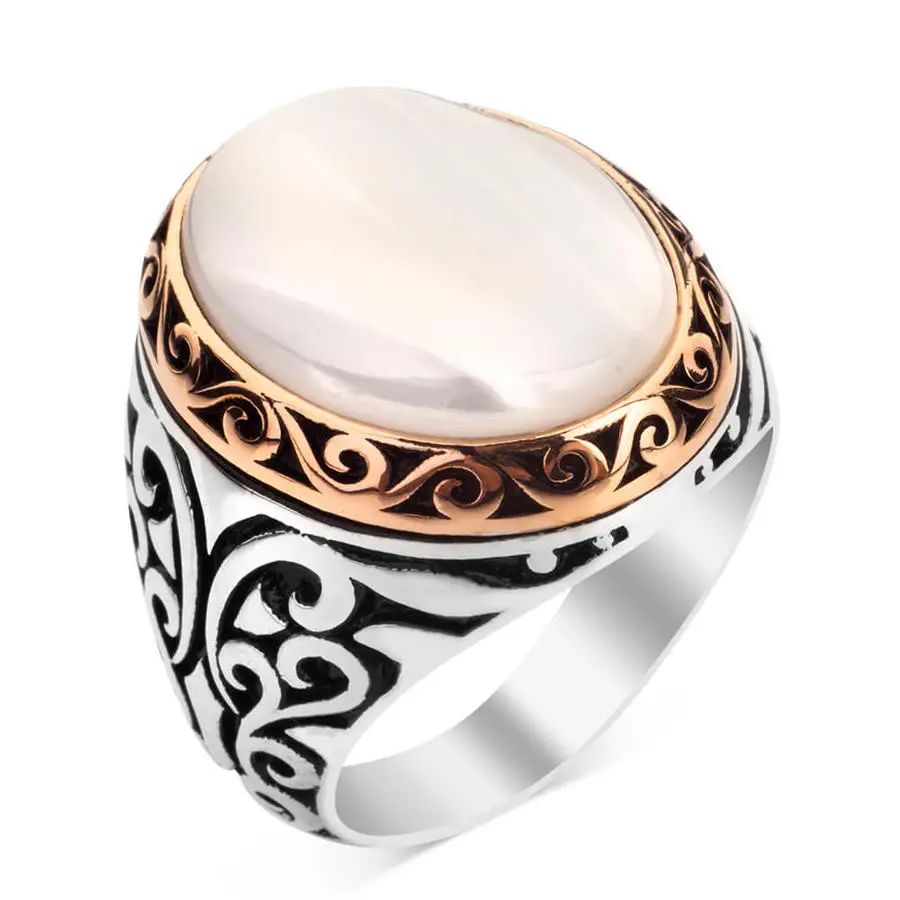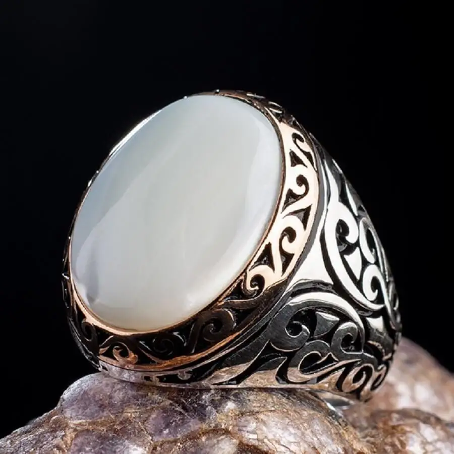 925 пробы Серебряное белое перламутровое мужское кольцо с камнем стильное качество элегантное впечатляющее завораживающее дизайнерское оттоманское монограмма