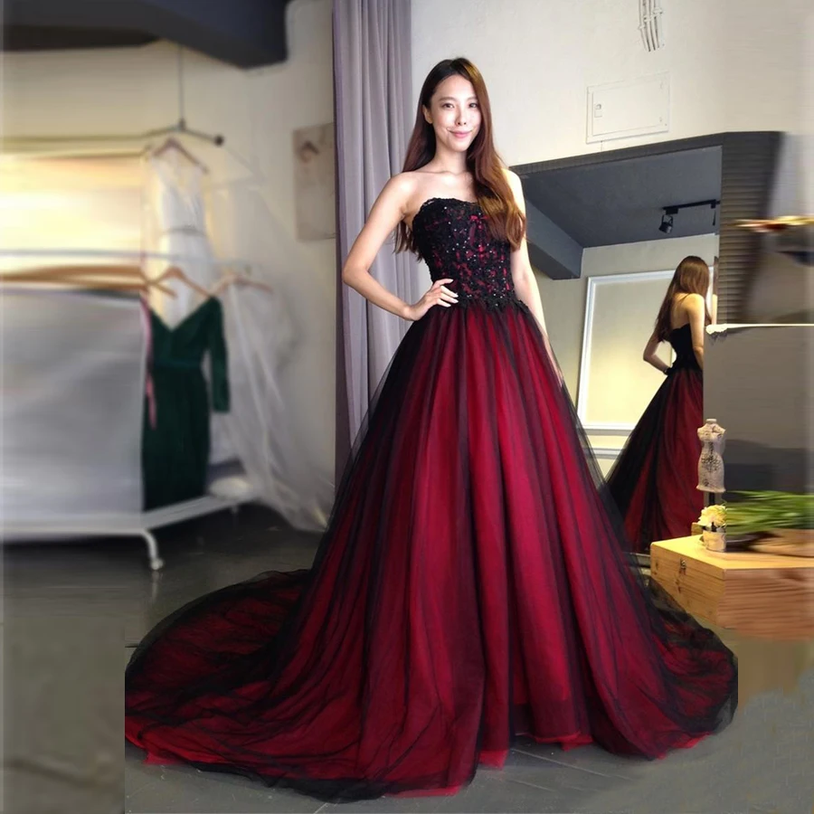 Женское длинное платье с завязкой на спине, черноеБордовое платье невесты, длинное вечернее платье
