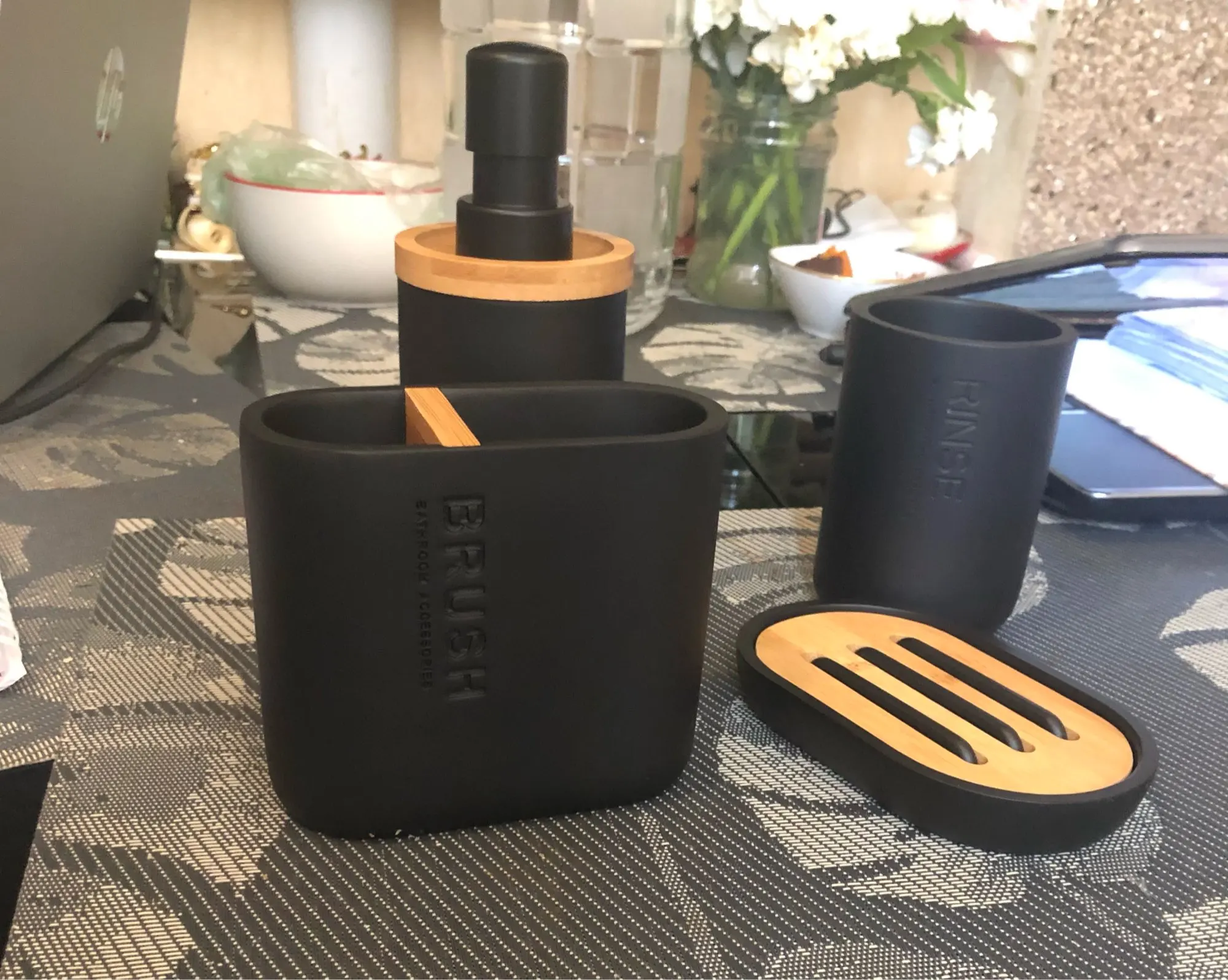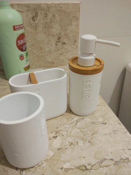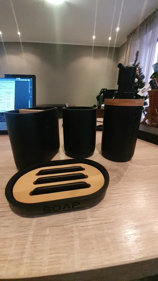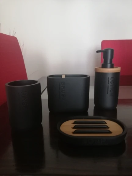 Набор пришёл в измятой коробке, но благодаря тщательной упаковке в пупырчатую плёнку не имеет ни малейших повреждений. Стильный набор. Предметы не крупные, строгих и лаконичных форм. Соответствуют описанию и цене. Принесли домой из- за проблем с постоматом. Без доплаты. Довольна