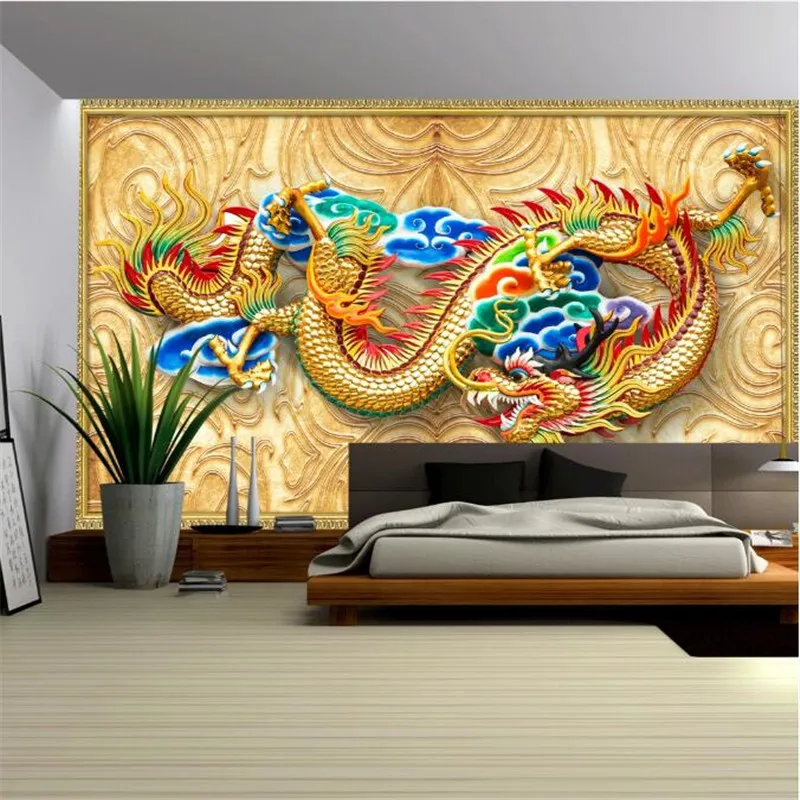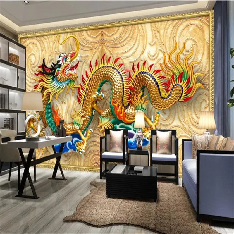 Пользовательские 3D трехмерный рельеф дракон фото обои ресторанный в китайском стиле отель промышленный Декор настенная бумага 3D