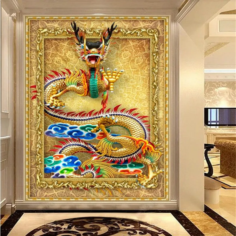 Пользовательские китайский стиль 3D рельефный дракон фото обои для роскошного домашнего декора отель ресторан вход Фреска для коридора обои 3D
