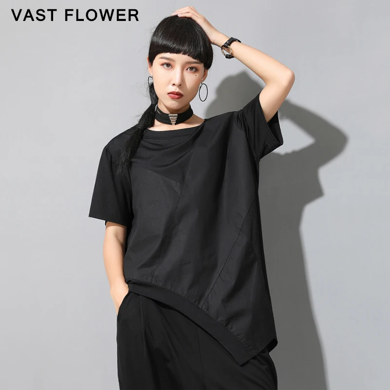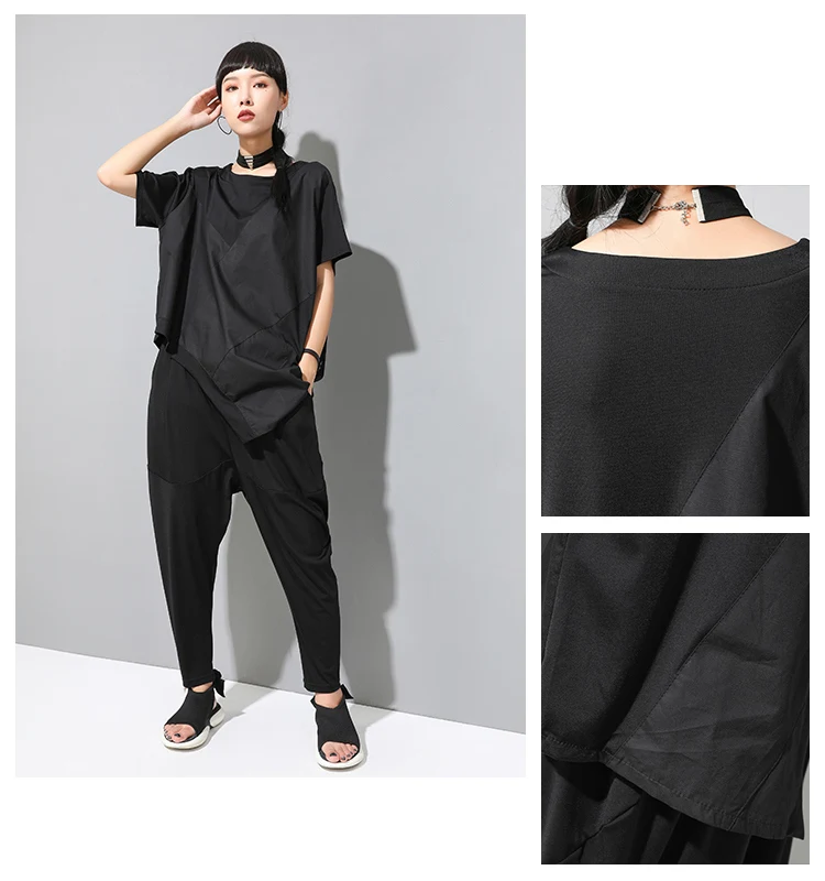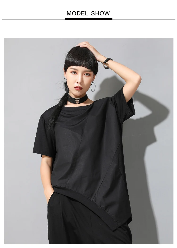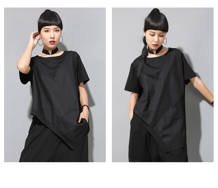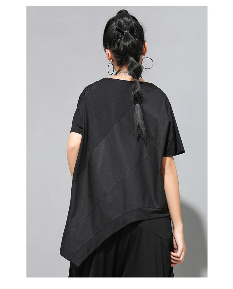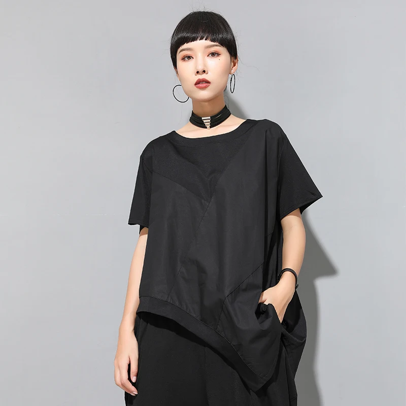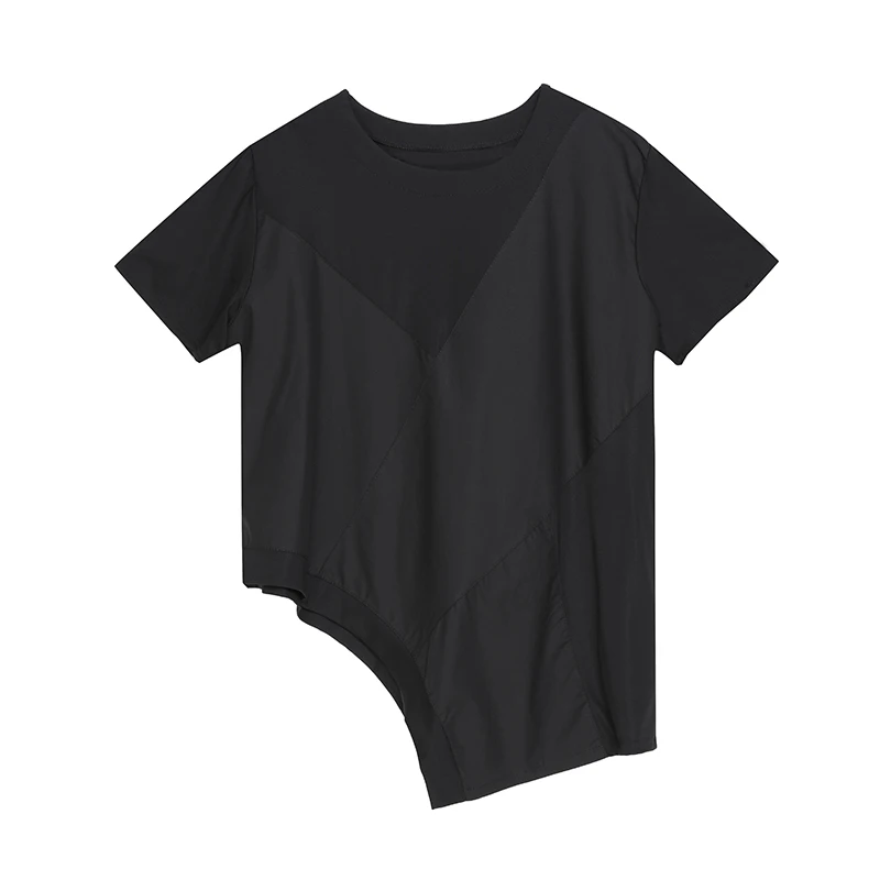 Женская футболка с коротким рукавом, черная, асимметричная, в стиле пэчворк, свободная, повседневная, большого размера, лето 2021