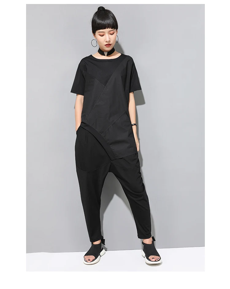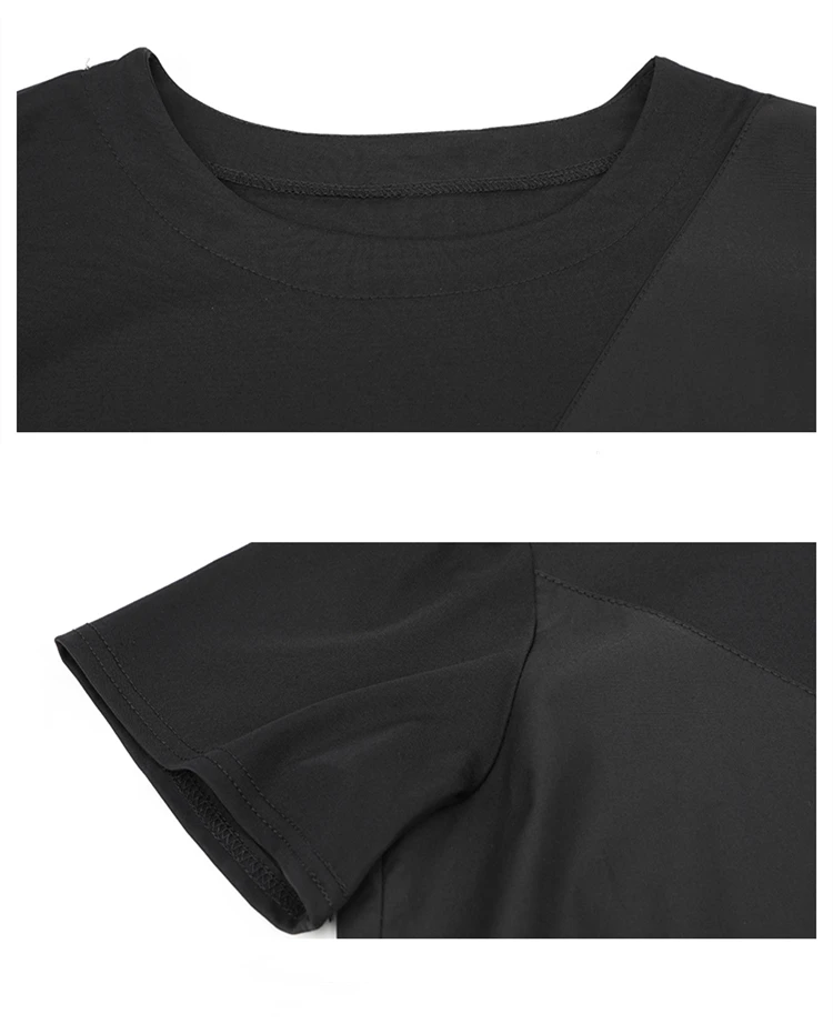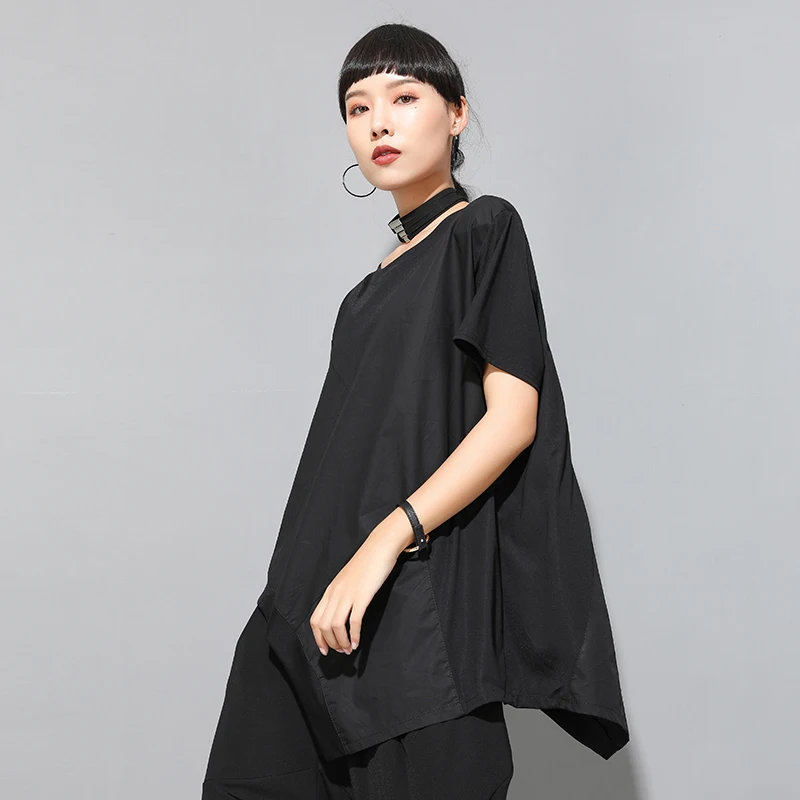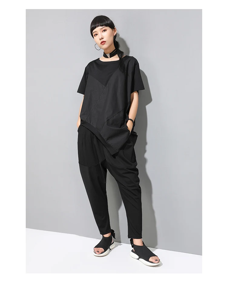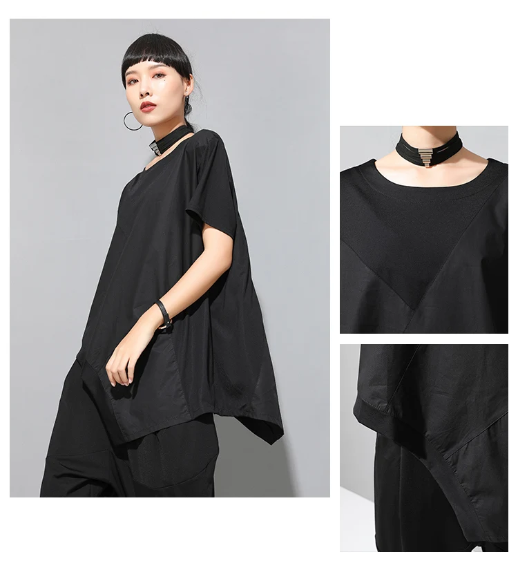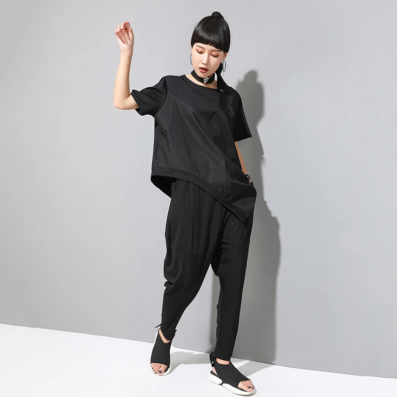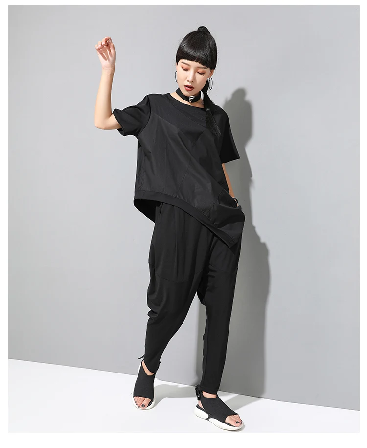 Женская футболка с коротким рукавом, черная, асимметричная, в стиле пэчворк, свободная, повседневная, большого размера, лето 2021