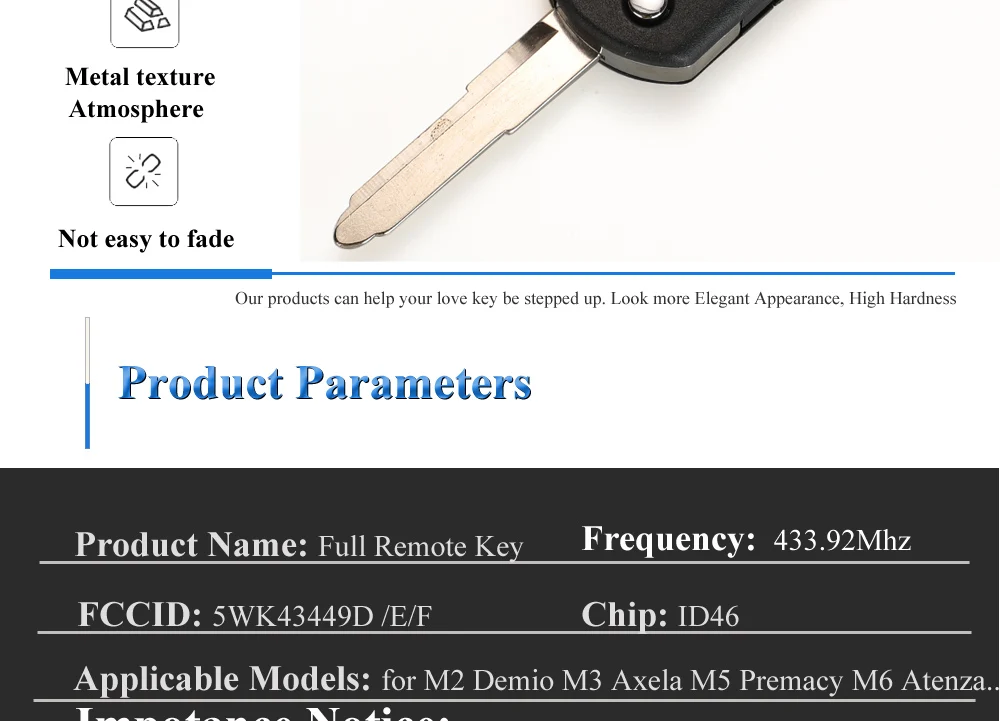 Ключ хорошего качества. В этот же день нарезал жало. В замке сидит хорошо. Пластик наощуп приятный. Чип прописался с первого раза. Мазда 6 gh 2008.