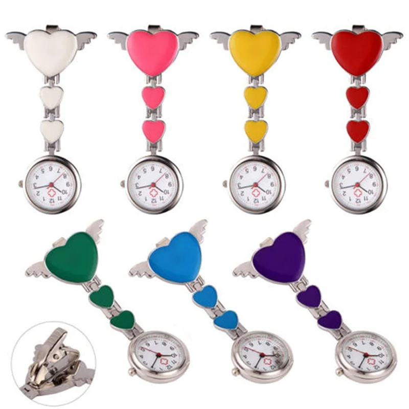 Женские кварцевые карманные часы с сердечком и крыльями, с зажимом ...