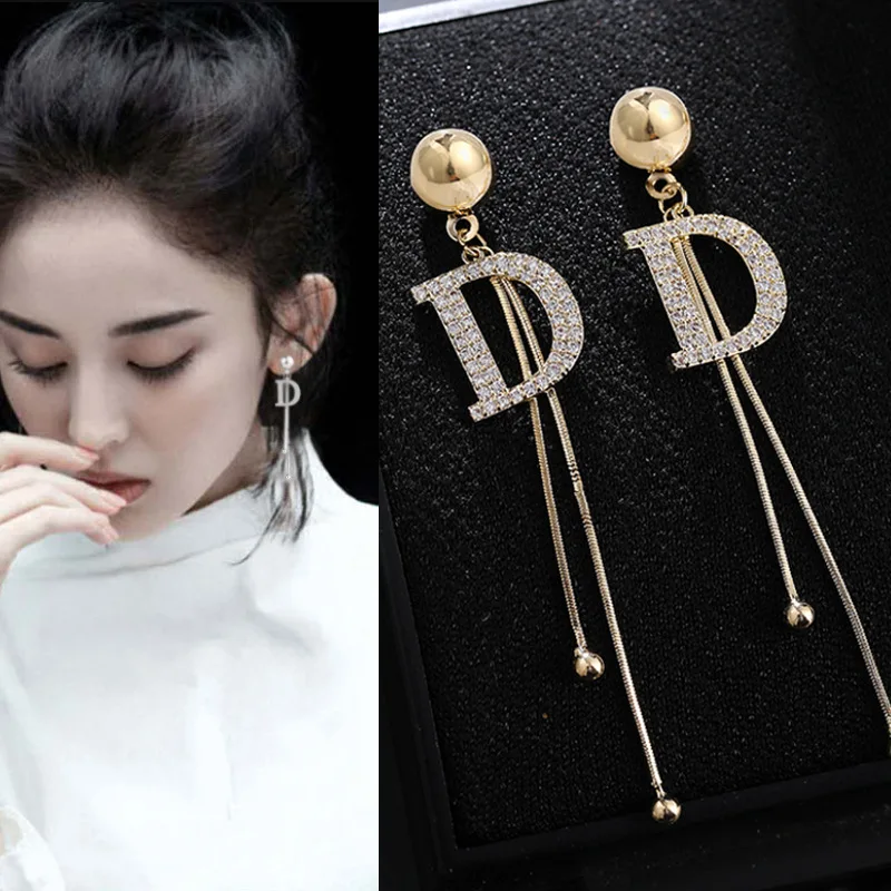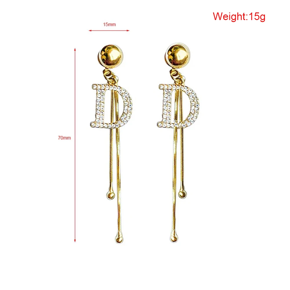 Женские длинные висячие серьги-кисточки, серьги с кристаллами в виде змеи и букв D, бижутерия без минимального заказа
