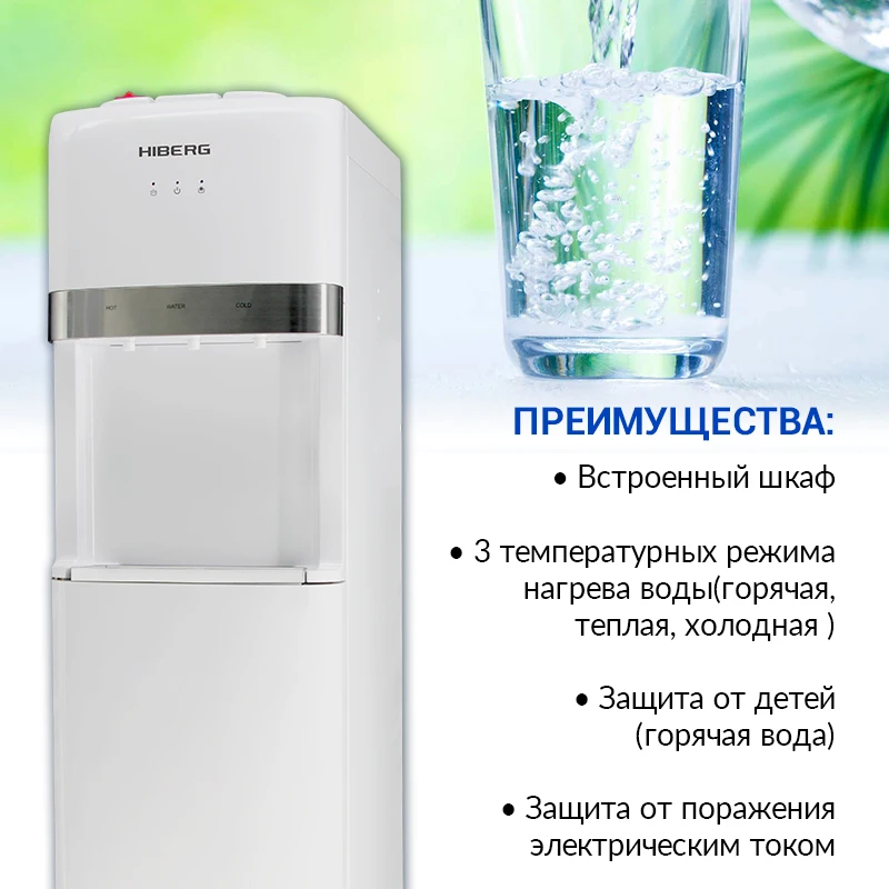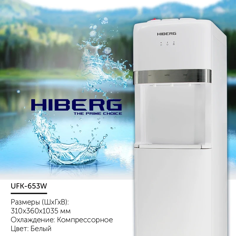 Диспенсер для воды HIBERG UFK-653W, с нижней загрузкой бутыли, с компрессоным охлаждением до 5-10 С